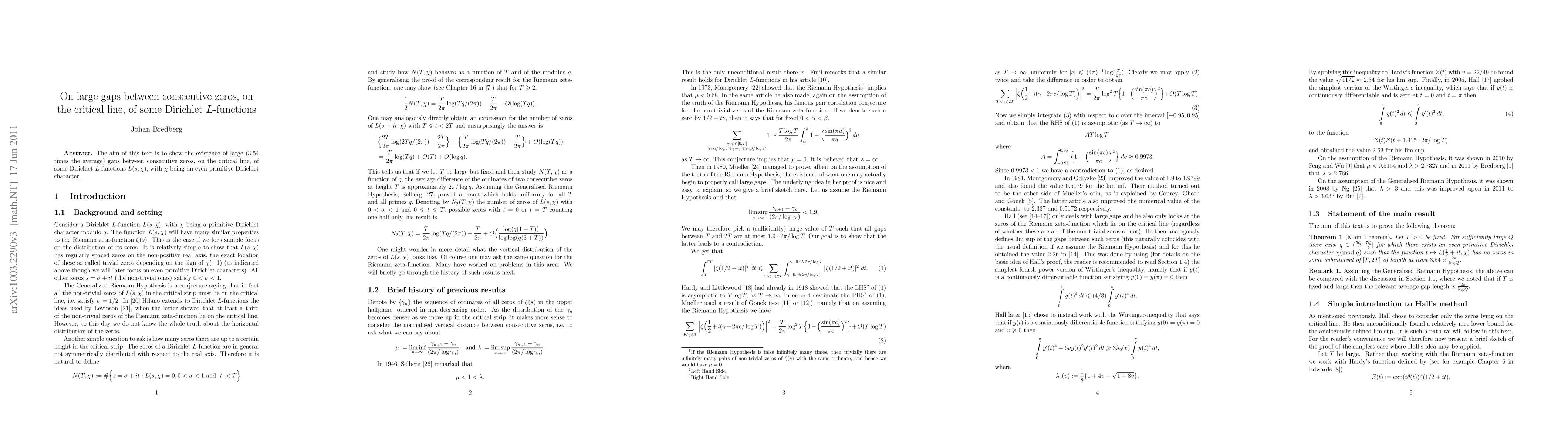 Summary: The paper demonstrates the existence of significant (3.54 times the average) gaps between consecutive zeros of certain Dirichlet $L$-functions $L(s,\chi)$ on the critical line, where $\chi$ is an even primitive Dirichlet character. This finding provides new insights into the distribution of zeros of these $L$-functions.