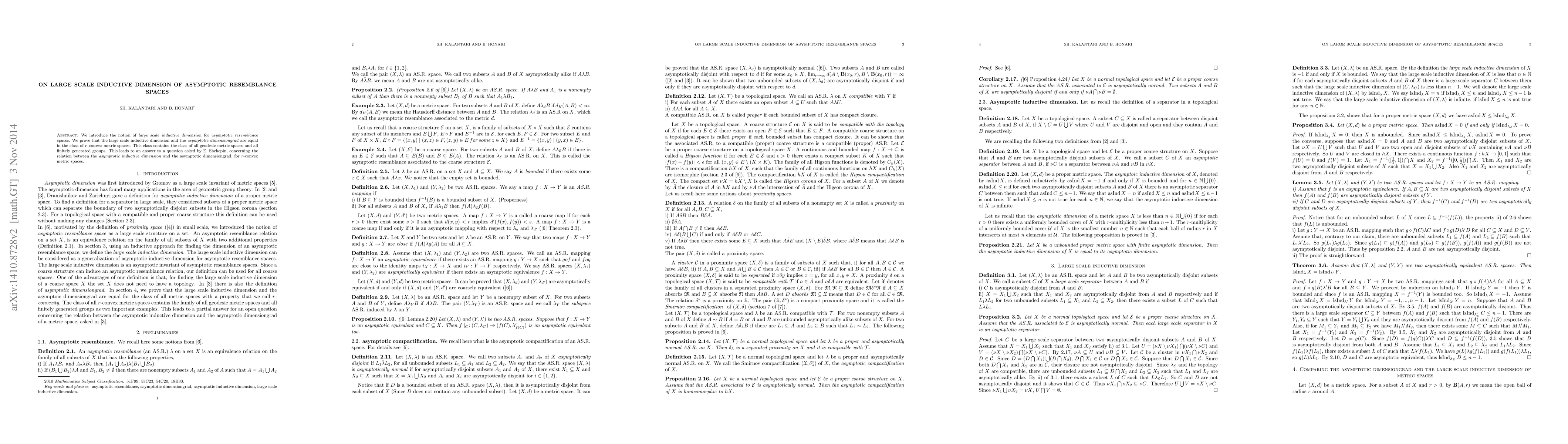 This paper introduces the concept of large scale inductive dimension for asymptotic resemblance spaces and demonstrates that it is equivalent to the asymptotic dimensiongrad in r-convex metric spaces, which include geodesic metric spaces and finitely generated groups, thus answering a question posed by E. Shchepin.
