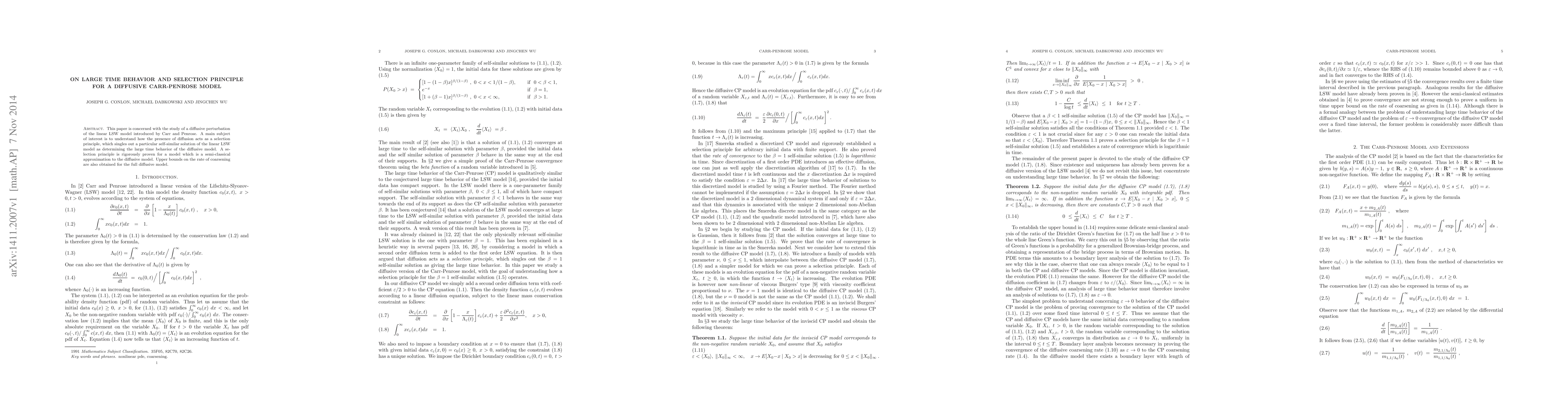 This paper is concerned with the study of a diffusive perturbation of the linear LSW model introduced by Carr and Penrose. A main subject of interest is to understand how the presence of diffusion acts as a selection principle, which singles out a particular self-similar solution of the linear LSW model as determining the large time behavior of the diffusive model. A selection principle is rigorously proven for a model which is a semi-classical approximation to the diffusive model. Upper bounds on the rate of coarsening are also obtained for the full diffusive model.