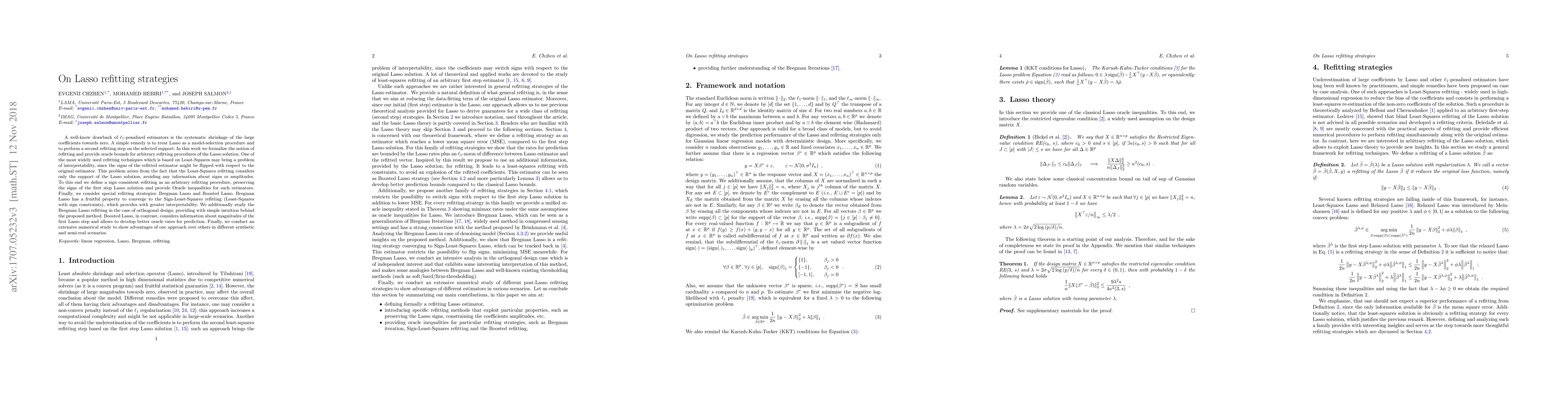 A well-know drawback of l_1-penalized estimators is the systematic shrinkage of the large coefficients towards zero. A simple remedy is to treat Lasso as a model-selection procedure and to perform a second refitting step on the selected support. In this work we formalize the notion of refitting and provide oracle bounds for arbitrary refitting procedures of the Lasso solution. One of the most widely used refitting techniques which is based on Least-Squares may bring a problem of interpretability, since the signs of the refitted estimator might be flipped with respect to the original estimator. This problem arises from the fact that the Least-Squares refitting considers only the support of the Lasso solution, avoiding any information about signs or amplitudes. To this end we define a sign consistent refitting as an arbitrary refitting procedure, preserving the signs of the first step Lasso solution and provide Oracle inequalities for such estimators. Finally, we consider special refitting strategies: Bregman Lasso and Boosted Lasso. Bregman Lasso has a fruitful property to converge to the Sign-Least-Squares refitting (Least-Squares with sign constraints), which provides with greater interpretability. We additionally study the Bregman Lasso refitting in the case of orthogonal design, providing with simple intuition behind the proposed method. Boosted Lasso, in contrast, considers information about magnitudes of the first Lasso step and allows to develop better oracle rates for prediction. Finally, we conduct an extensive numerical study to show advantages of one approach over others in different synthetic and semi-real scenarios.