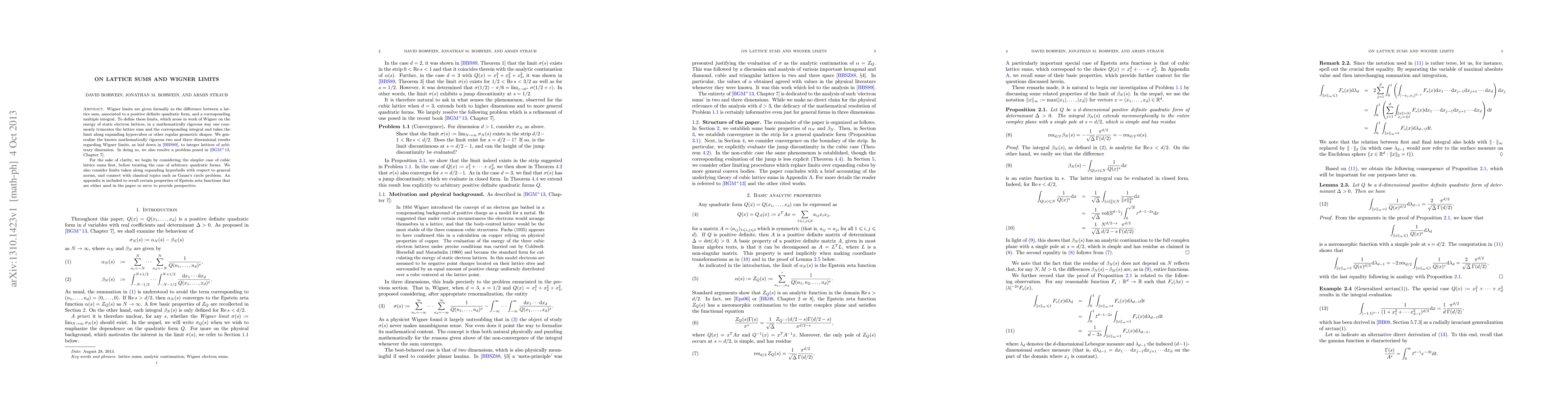 This paper generalizes Wigner limits to integer lattices of arbitrary dimension, resolving a problem posed in a 2013 book, and connects the results to Gauss's circle problem and properties of Epstein zeta functions.