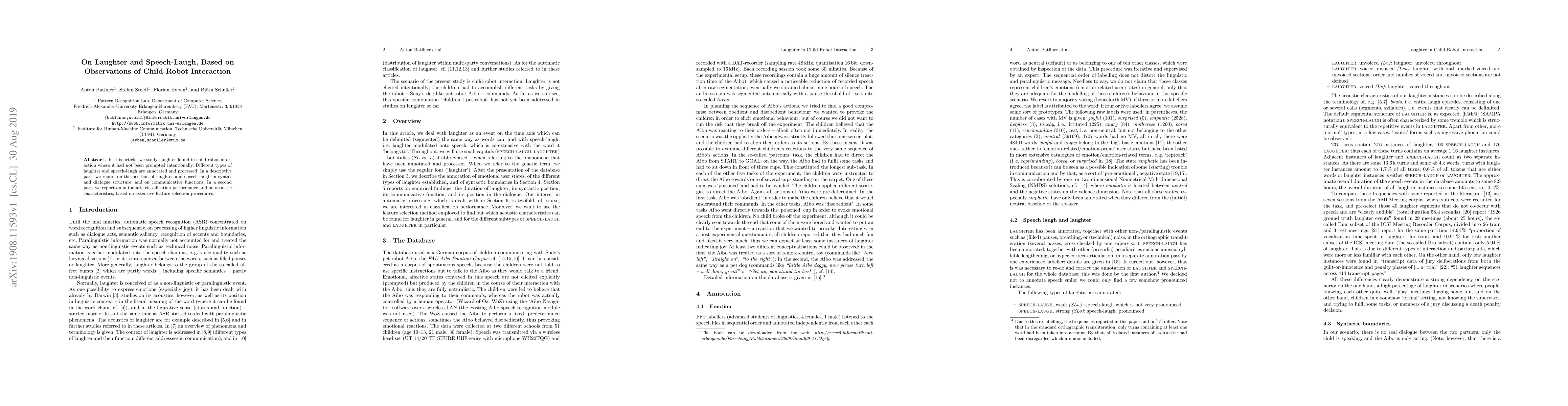 This paper investigates spontaneous laughter and speech-laugh in child-robot interactions, analyzing their syntactic placement, dialogue structure, and communicative functions. It also evaluates automatic classification performance and identifies acoustic characteristics through extensive feature selection.