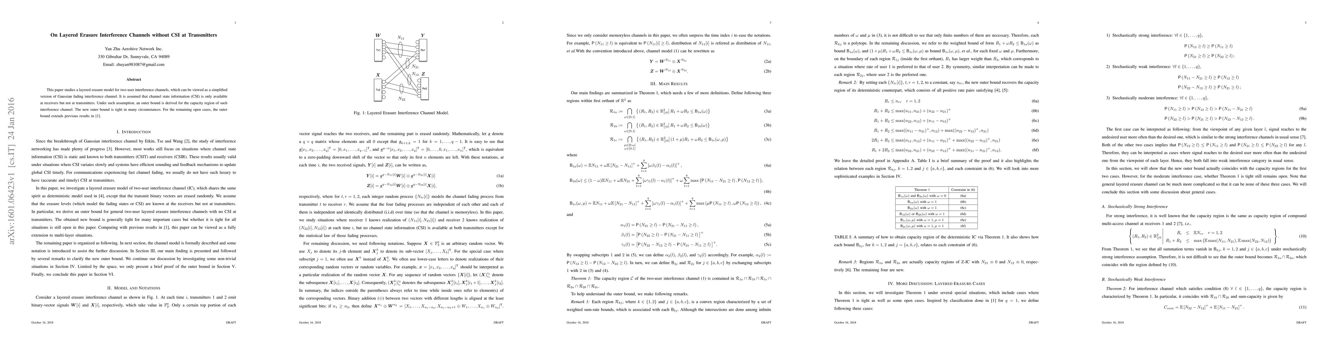 This paper investigates a layered erasure model for two-user interference channels without transmitter channel state information (CSI), providing an outer bound for the capacity region that is tight in many scenarios and extends previous results for the remaining cases.