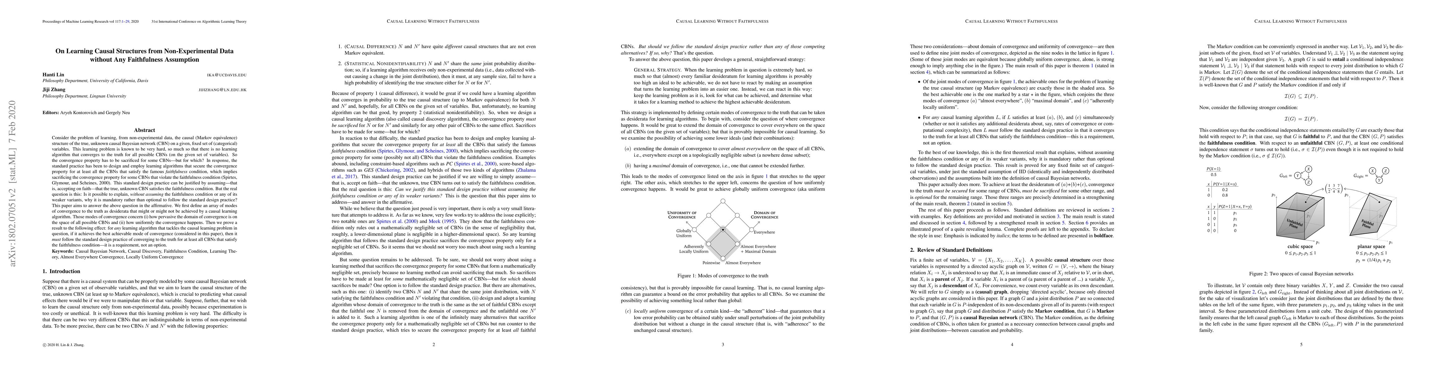 Researchers show that learning causal structures from non-experimental data requires following a standard design practice to ensure convergence to the truth for at least all CBNs satisfying the faithfulness condition.