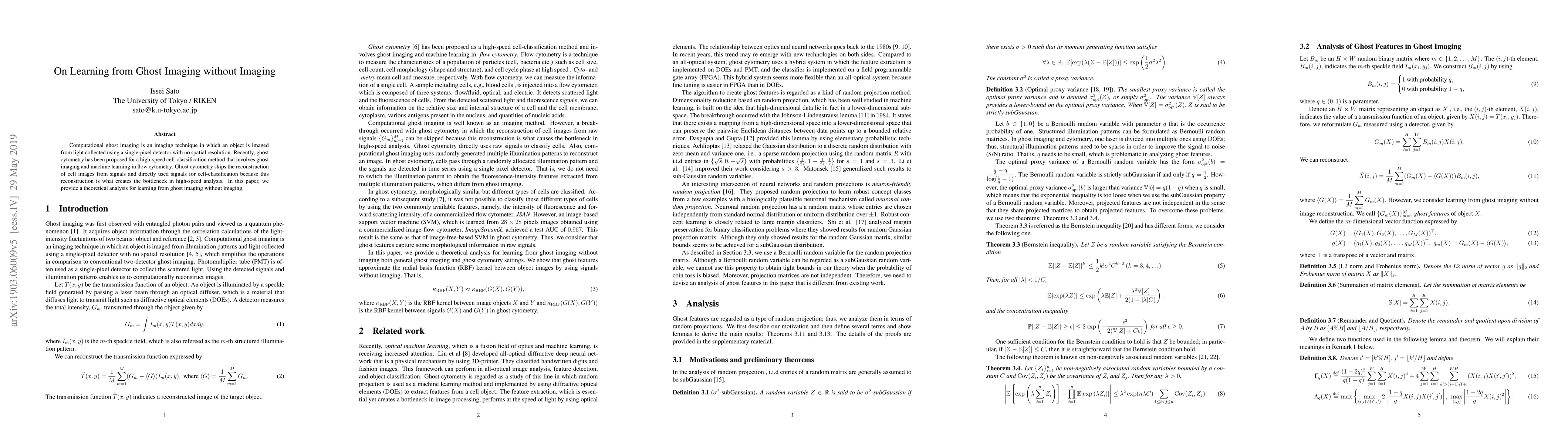 The paper provides a theoretical analysis of ghost features in ghost imaging and ghost cytometry, focusing on computational aspects and machine learning applications.