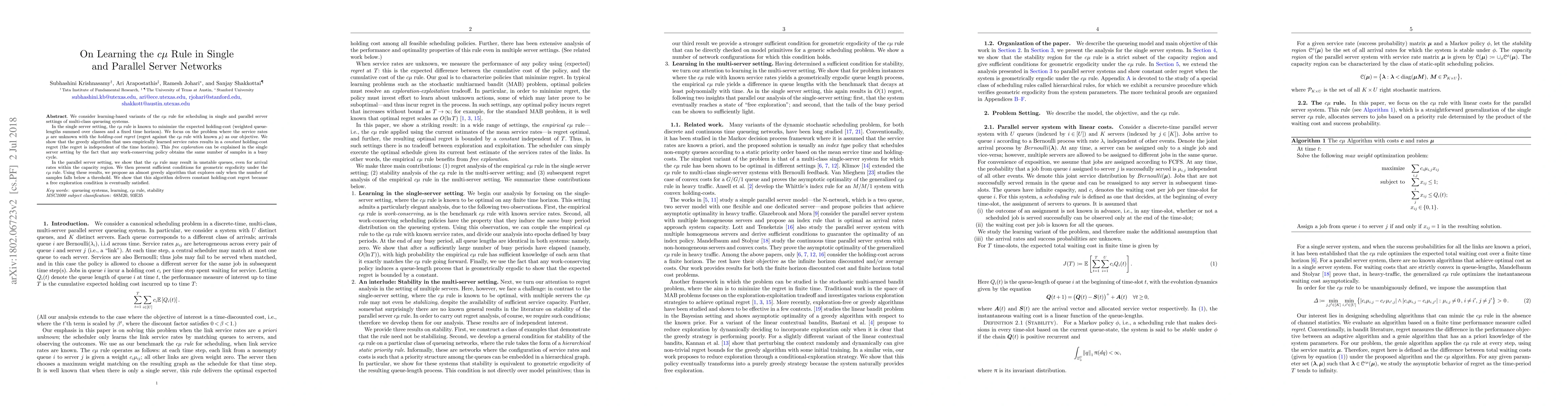 Researchers developed a new algorithm for learning the $c ext{ümu}$ rule in single and parallel server networks to minimize holding costs, achieving constant regret in single-server settings and improving stability in parallel servers.