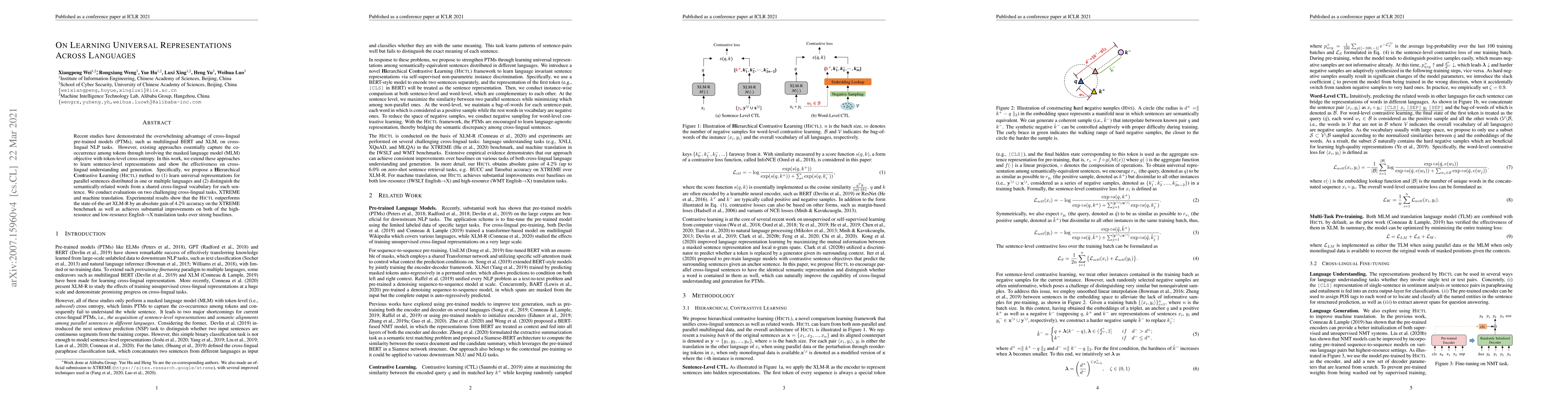 Researchers developed a new method called Hierarchical Contrastive Learning to learn universal representations across languages, outperforming the state-of-the-art model on cross-lingual tasks by 4.2% accuracy.