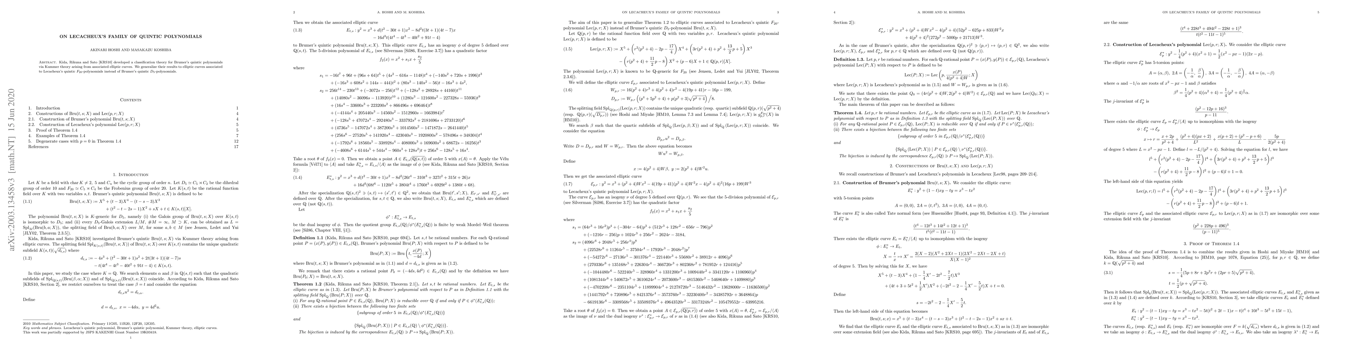 Summary: This paper extends classification theory for elliptic curves, originally developed for Brumer's quintic polynomials, to Lecacheux's quintic $F_{20}$-polynomials using Kummer theory. The focus is on elliptic curves associated with these quintic polynomials.