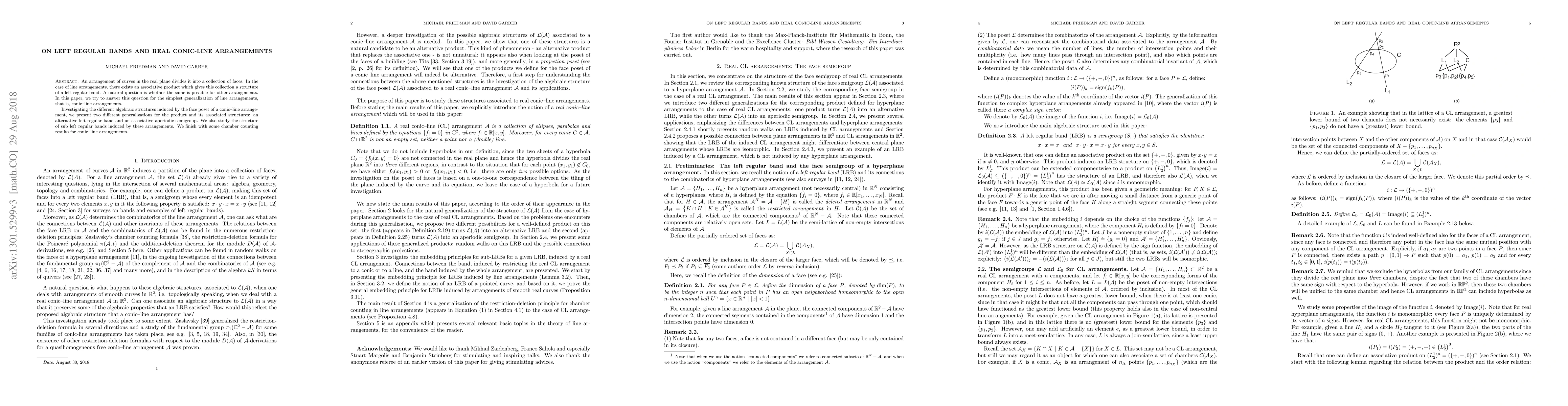 This paper explores the algebraic structures induced by conic-line arrangements in the real plane, discovering both an alternative left regular band and an associative aperiodic semigroup. It concludes with chamber counting results for these arrangements.