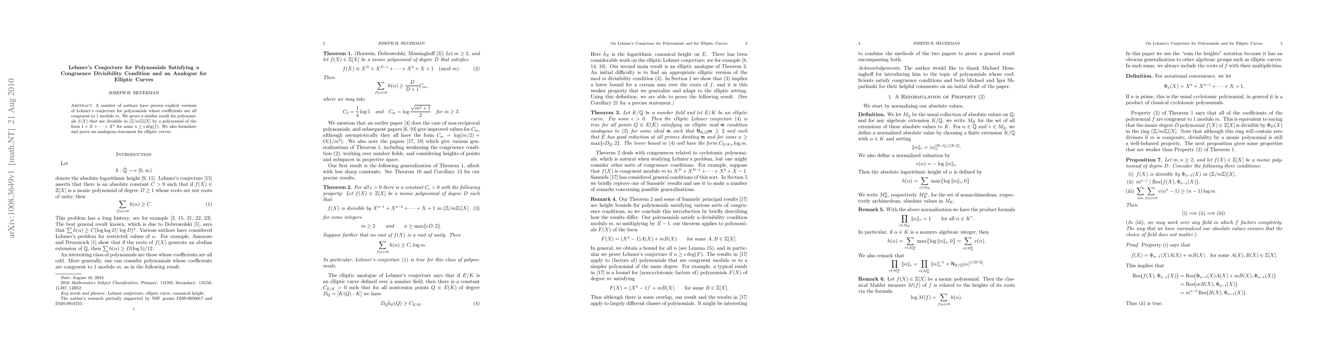This paper proves explicit versions of Lehmer's conjecture for polynomials divisible by a specific form and extends these results to analogous statements for elliptic curves. The findings provide new insights into the distribution of values of these polynomials and curves.