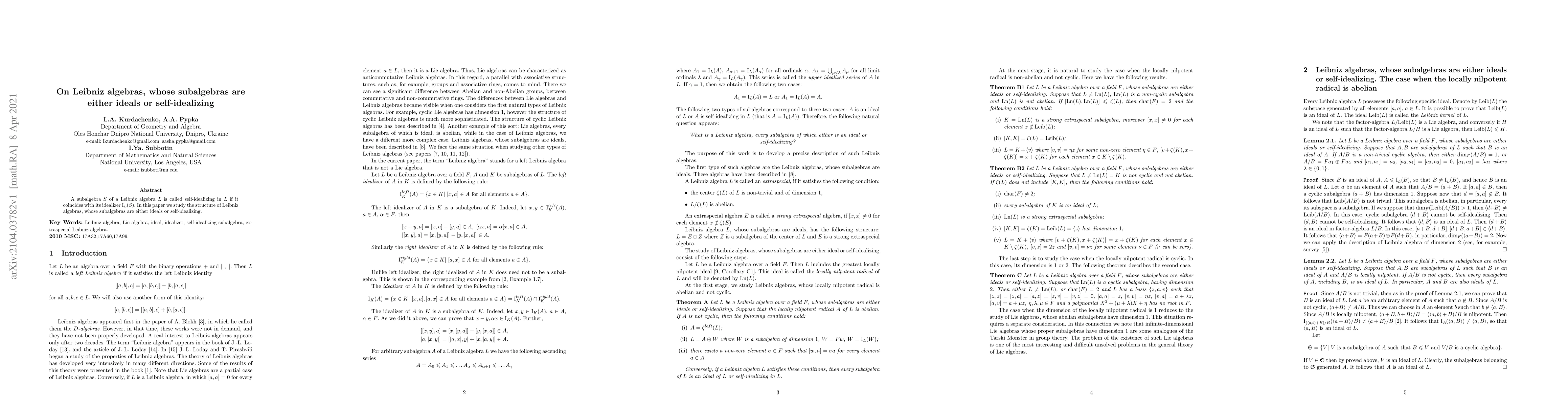 This paper studies Leibniz algebras with subalgebras that are either ideals or self-idealizing, exploring their structure and implications.