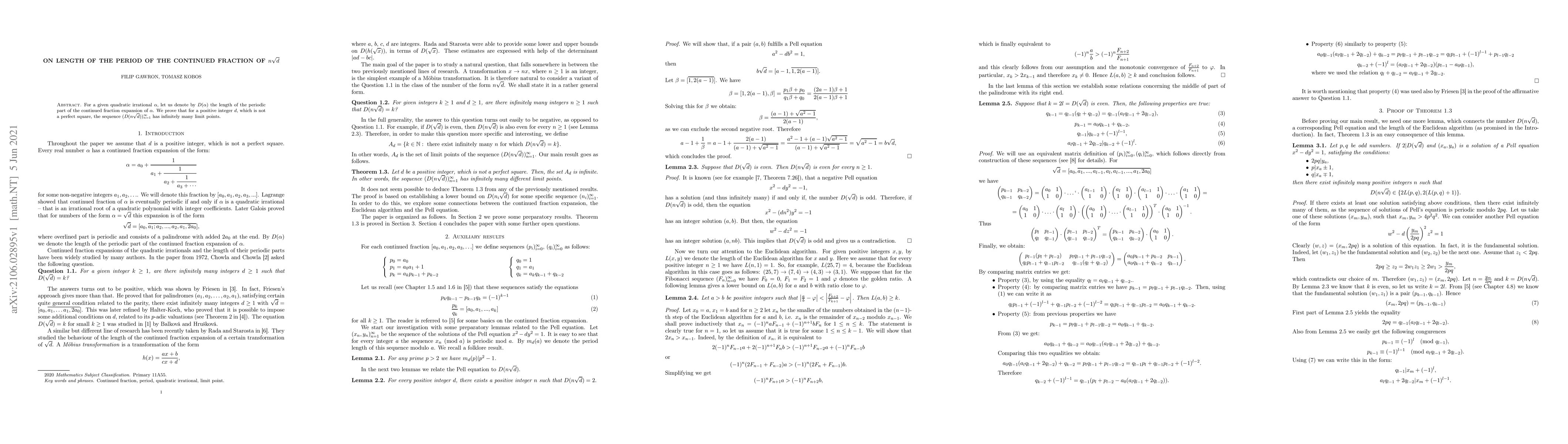 For a given quadratic irrational $\alpha$, let us denote by $D(\alpha)$ the length of the periodic part of the continued fraction expansion of $\alpha$. We prove that for a positive integer $d$, which is not a perfect square, the sequence $(D(n\sqrt{d}))_{n=1}^{\infty}$ has infinitely many limit points.