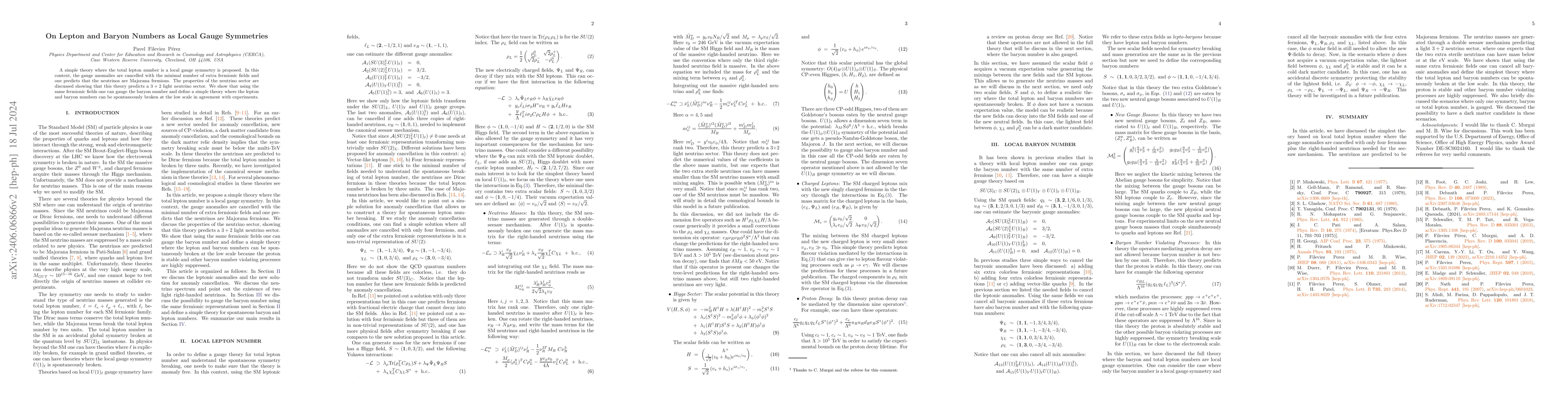This paper proposes a local gauge symmetry theory where total lepton number conservation is fundamental, predicting Majorana neutrinos and a $3+2$ light neutrino sector. It also introduces a framework to gauge baryon number, allowing for spontaneous breaking of both lepton and baryon numbers at low scales.