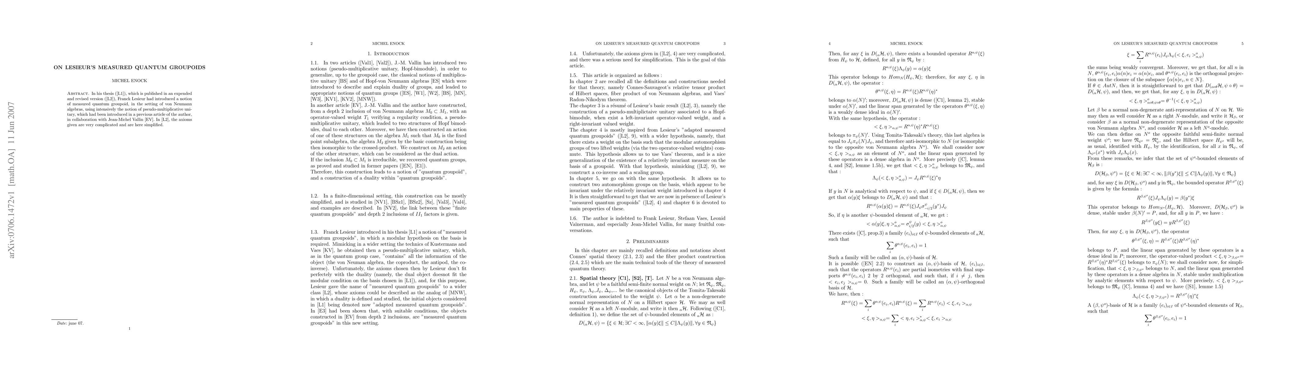 In his thesis ([L1]), which is published in an expended and revised version ([L2]), Franck Lesieur had introduced a notion of measured quantum groupoid, in the setting of von Neumann algebras, using intensively the notion of pseudo-multiplicative unitary, which had been introduced in a previous article of the author, in collaboration with Jean-Michel Vallin [EV]. In [L2], the axioms given are very complicated and are here simplified.