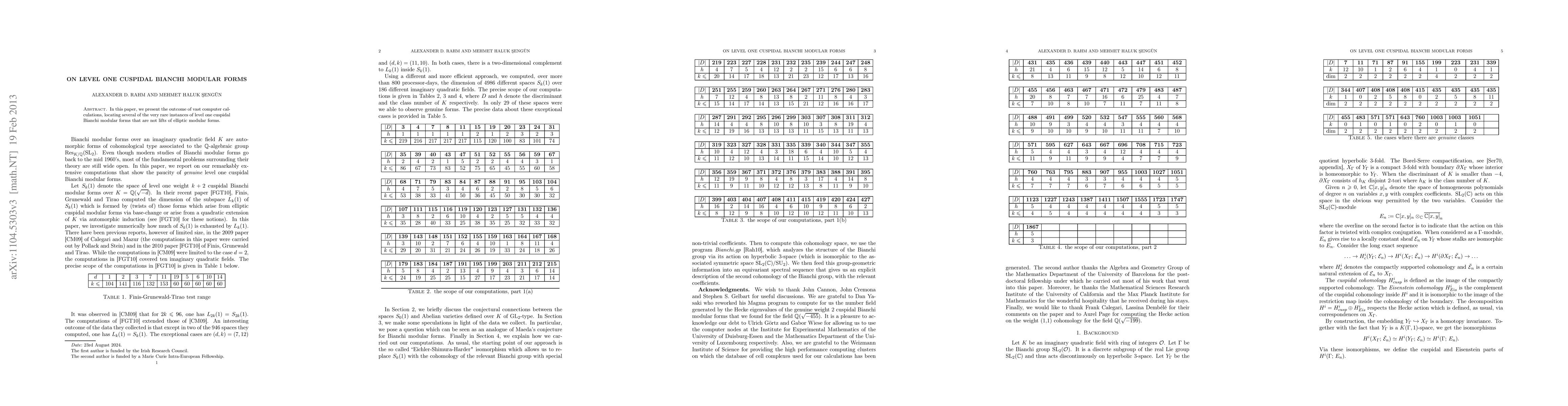 Summary: This paper reports extensive computational findings identifying several rare level one cuspidal Bianchi modular forms that do not originate as lifts of elliptic modular forms, contributing to the understanding of modular forms in algebraic number theory.