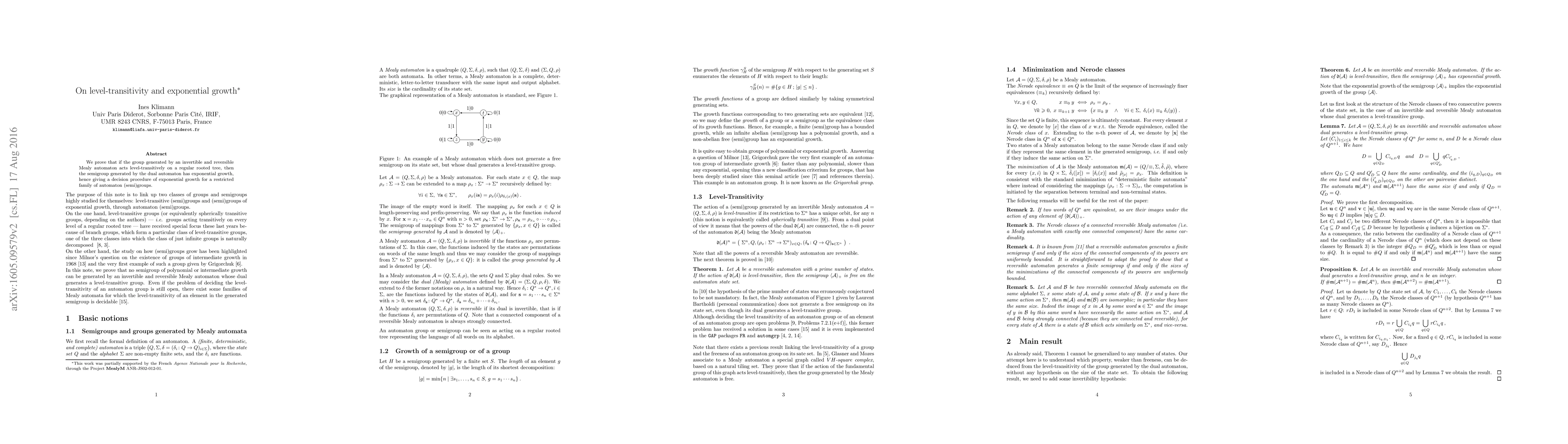 We prove that if the group generated by a Mealy automaton acts level-transitively on a regular rooted tree, then the semigroup generated by the dual automaton has exponential growth, hence giving a decision procedure of exponential growth for a restricted family of automaton semigroups.