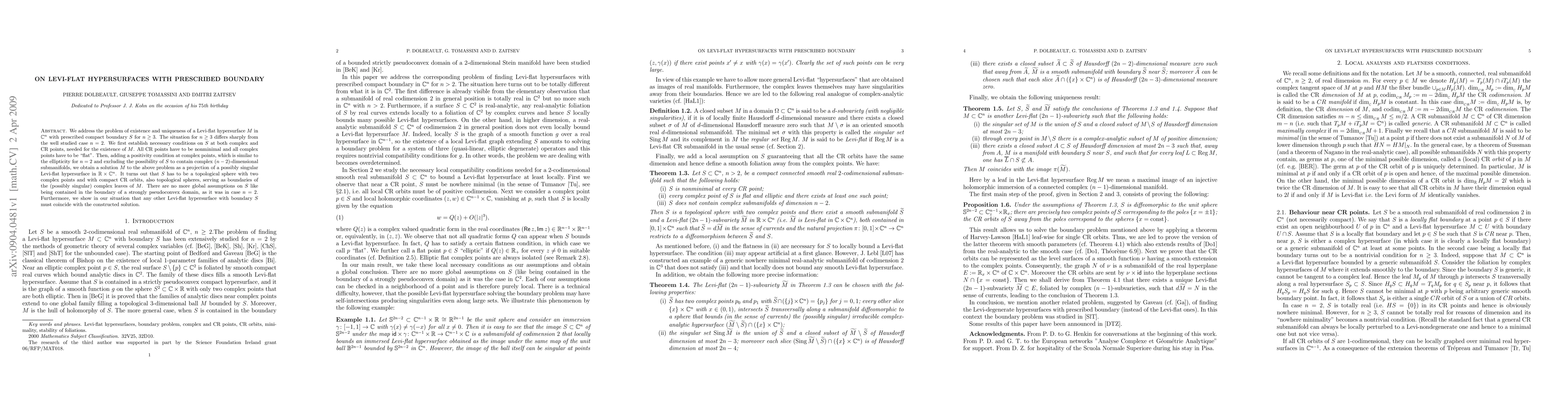 This paper studies the existence and uniqueness of Levi-flat hypersurfaces in $\mathbb{C}^n$ ($n\geq3$) with a given compact boundary $S$. It finds that conditions for $S$ at complex and CR points are necessary for existence, and establishes a solution via a projection method, showing $S$ must be a topological sphere with specific properties.