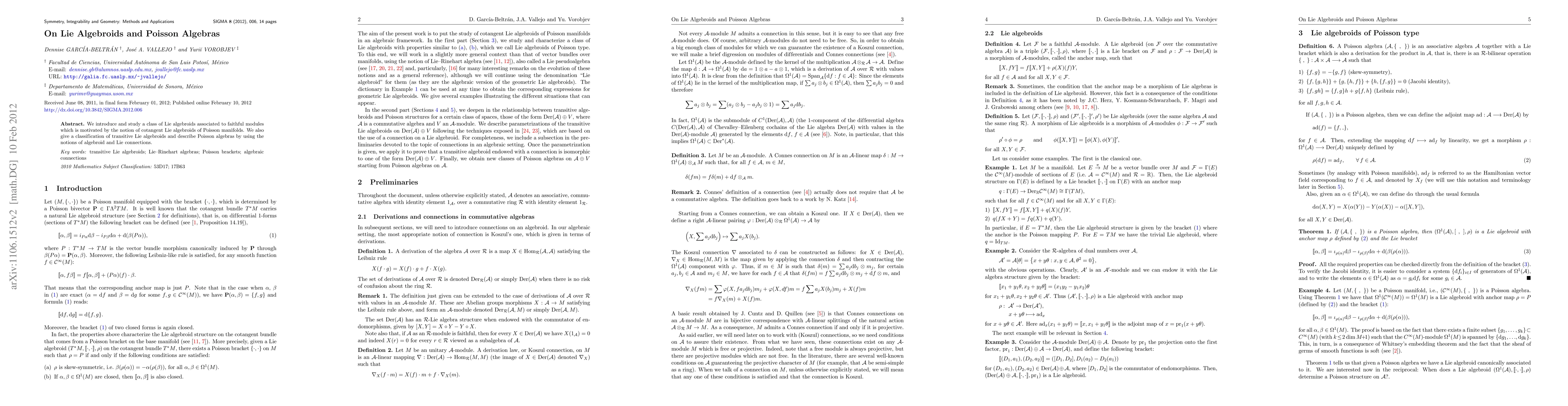 This paper introduces Lie algebroids linked to faithful modules inspired by cotangent Lie algebroids of Poisson manifolds, classifies transitive Lie algebroids, and uses algebroid and Lie connection concepts to describe Poisson algebras.