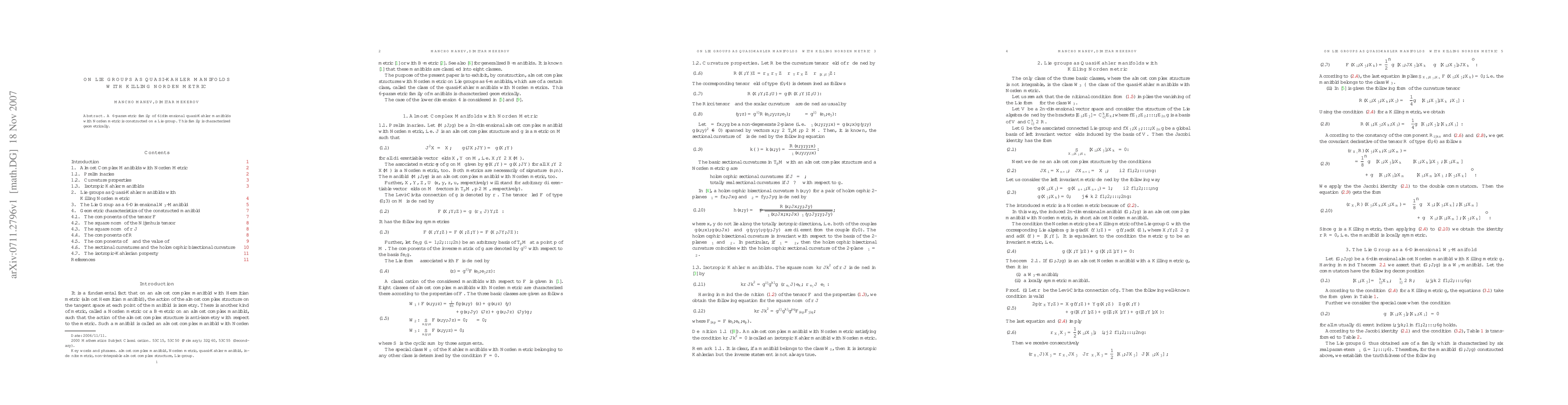 This paper constructs a 6-parametric family of 6-dimensional quasi-Kähler manifolds with Norden metric on a Lie group and characterizes this family geometrically. The study highlights the unique geometric properties of these manifolds within the context of Lie group theory.