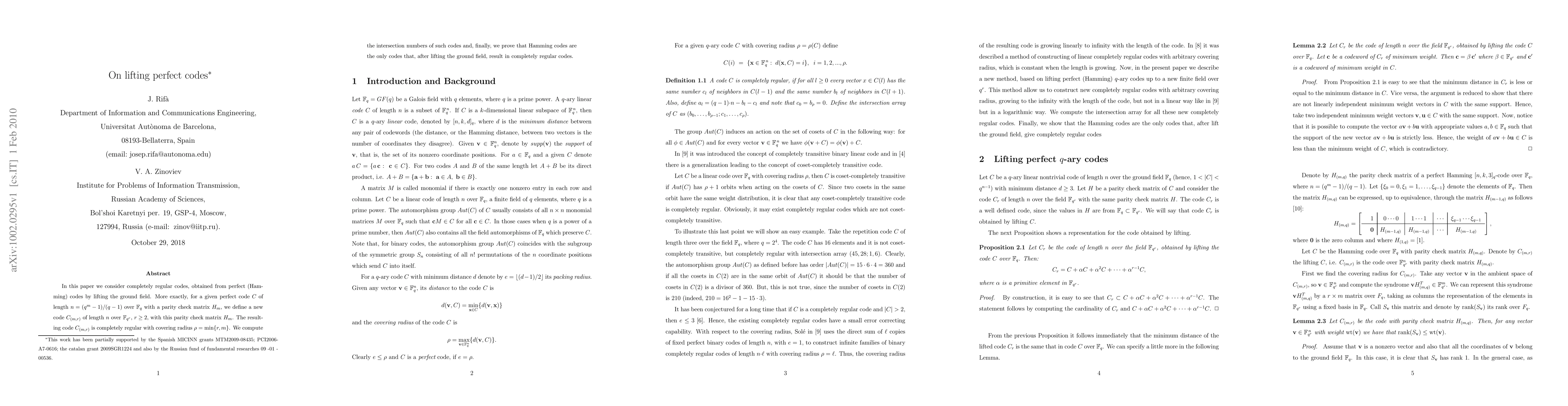 This paper investigates completely regular codes derived from perfect Hamming codes by extending the ground field. It demonstrates that lifting a perfect code results in a new code with a covering radius dependent on the lifting factor, and proves that only Hamming codes maintain complete regularity under this transformation.