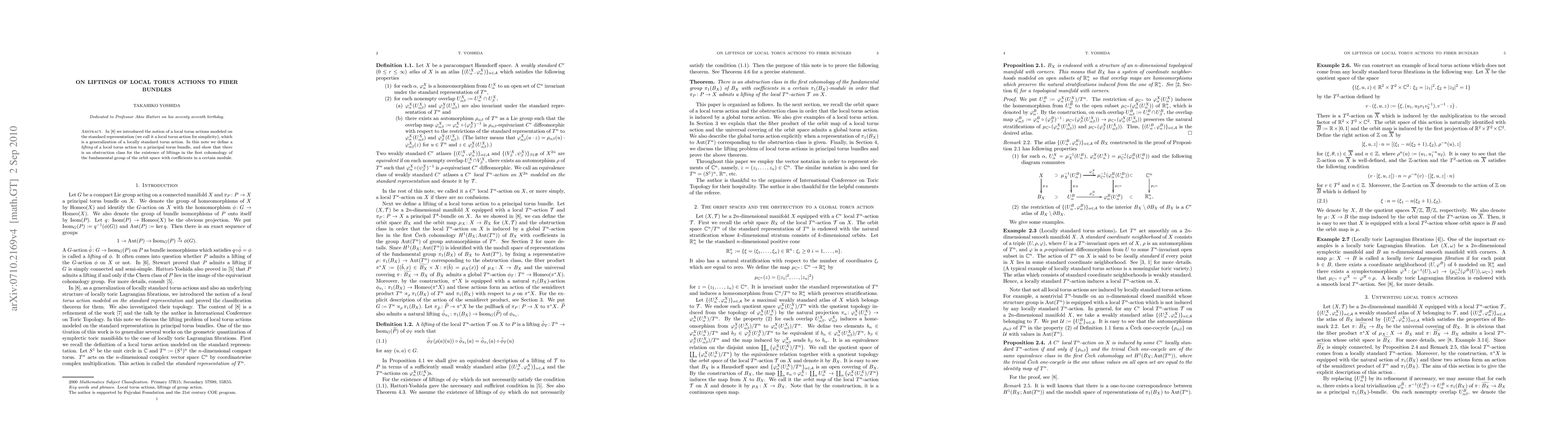The paper introduces a new construction method for lifting local torus actions to principal torus bundles.