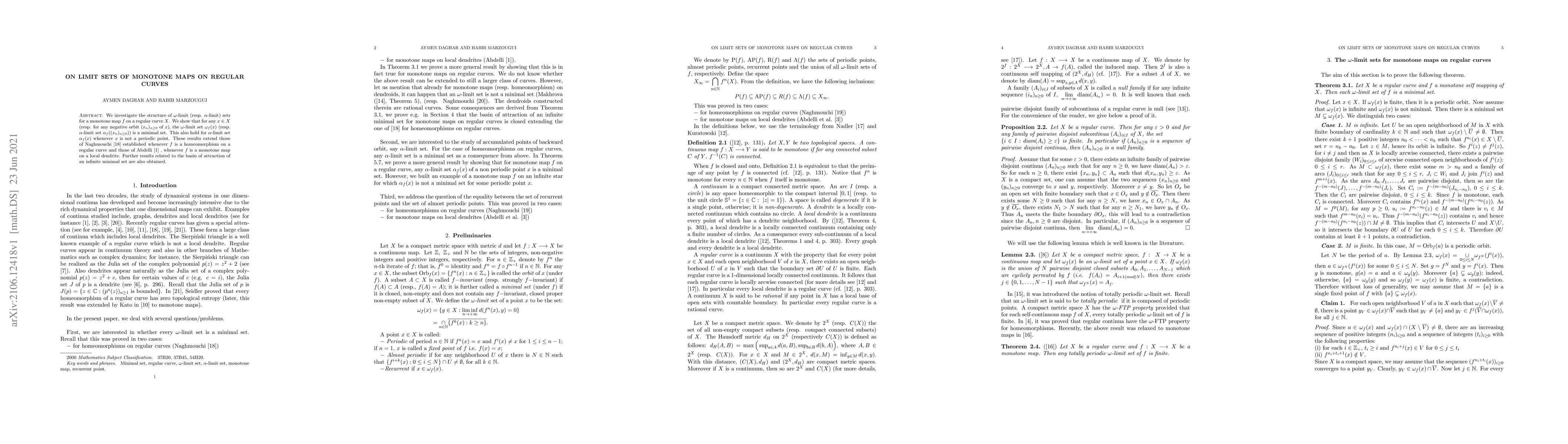 The work extends existing results by Naghmouchi and Abdelli, providing new insights into the structure of limit sets for monotone maps on regular curves, which is a novel contribution to the field of dynamical systems on topological spaces.