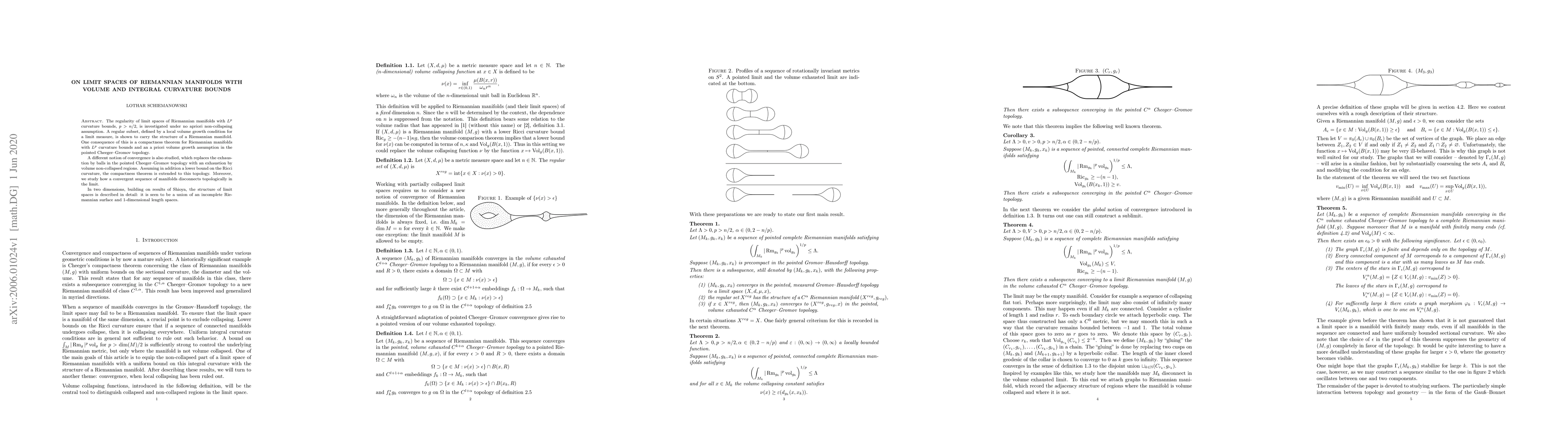 The regularity of limit spaces of Riemannian manifolds with L^p curvature bounds, $p > n/2$, is investigated under no apriori non-collapsing assumption. A regular subset, defined by a local volume growth condition for a limit measure, is shown to carry the structure of a Riemannian manifold. One consequence of this is a compactness theorem for Riemannian manifolds with $L^p$ curvature bounds and an a priori volume growth assumption in the pointed Cheeger-Gromov topology. A different notion of convergence is also studied, which replaces the exhaustion by balls in the pointed Cheeger-Gromov topology with an exhaustion by volume non-collapsed regions. Assuming in addition a lower bound on the Ricci curvature, the compactness theorem is extended to this topology. Moreover, we study how a convergent sequence of manifolds disconnects topologically in the limit. In two dimensions, building on results of Shioya, the structure of limit spaces is described in detail: it is seen to be a union of an incomplete Riemannian surface and 1-dimensional length spaces.
