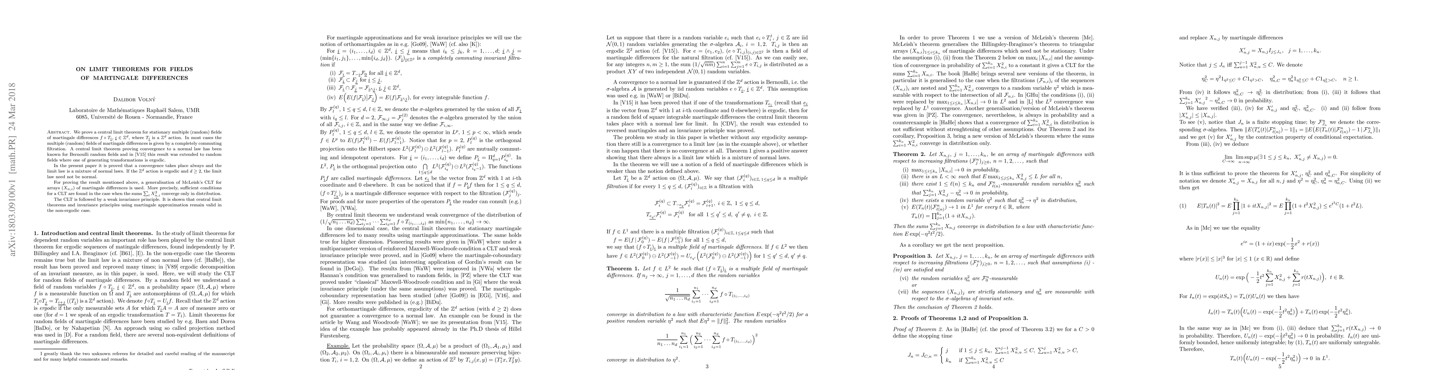 This paper proves a central limit theorem for stationary multiple fields of martingale differences, showing convergence to a mixture of normal laws under certain conditions. The results extend previous findings to non-ergodic cases, utilizing a generalized version of McLeish's CLT for arrays of martingale differences.