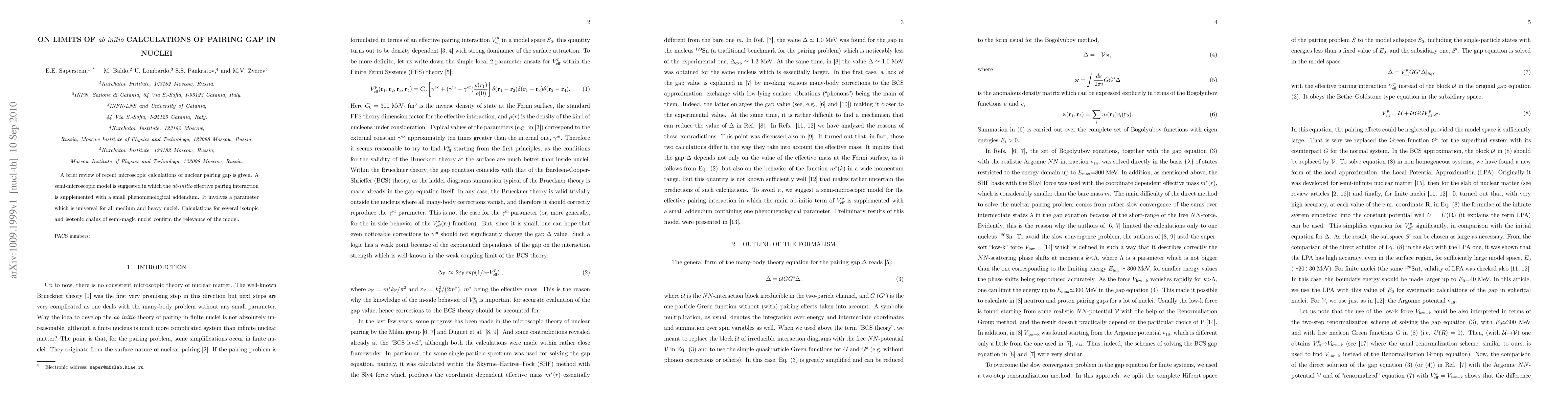 The paper introduces a semi-microscopic model for pairing gaps that combines ab-initio calculations with a small phenomenological addendum, providing a more accurate description of nuclear pairing gaps in medium and heavy nuclei.