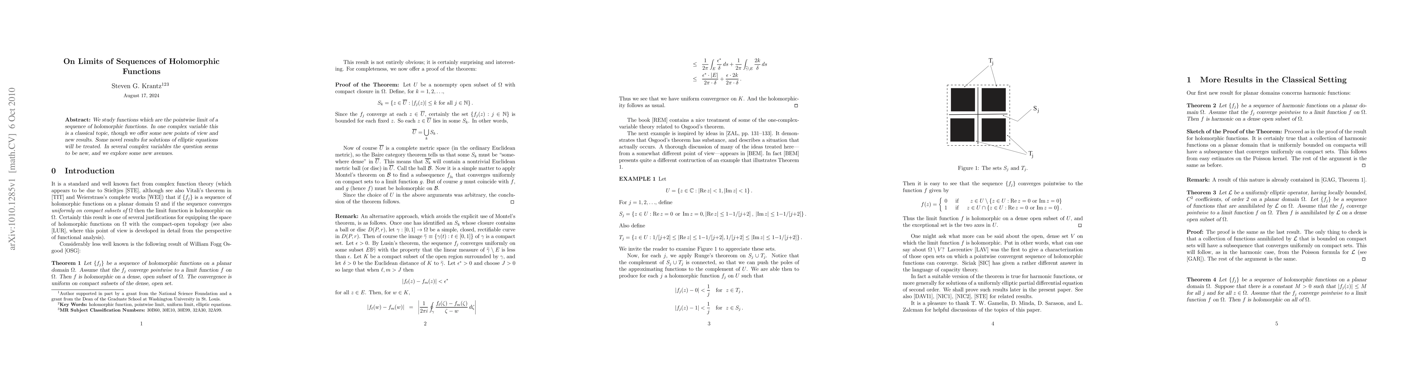 This paper explores the pointwise limits of sequences of holomorphic functions, offering new perspectives and results in both one and several complex variables, including novel findings on solutions to elliptic equations.