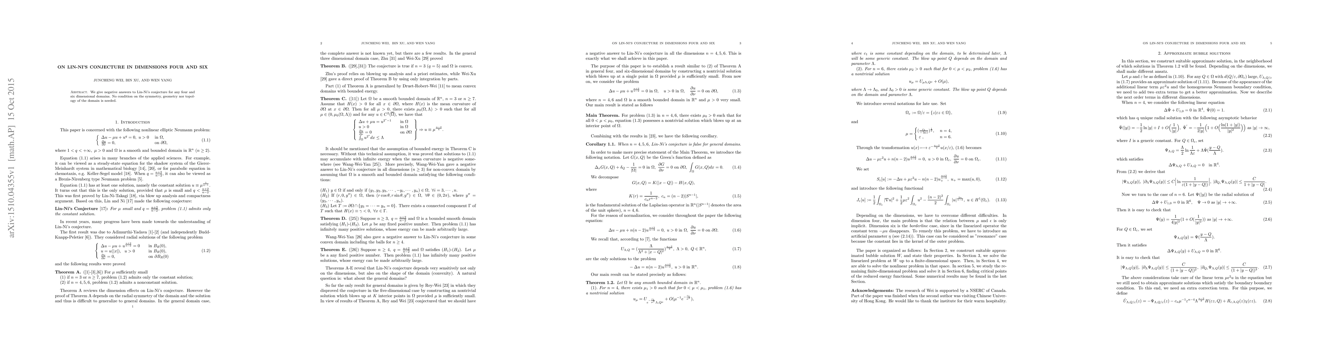 We give negative answers to Lin-Ni's conjecture for any four and six dimensional domains. No condition on the symmetry, geometry nor topology of the domain is needed.