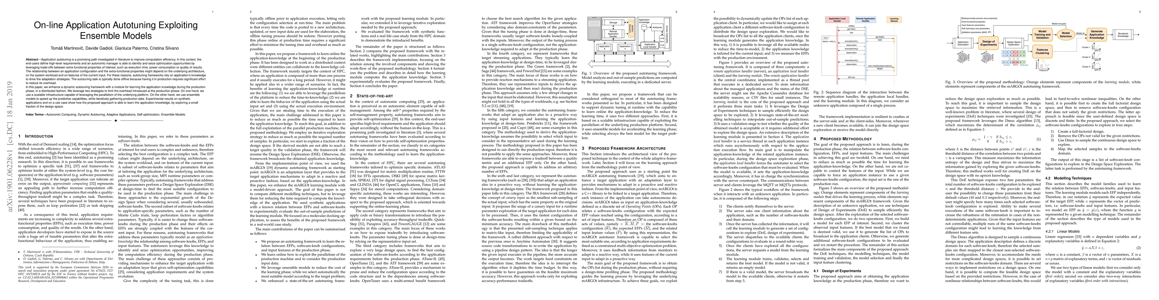 This paper proposes an online application autotuning framework that learns application knowledge during production to optimize extra-functional properties like execution time and power consumption. It utilizes ensemble models and a scalable infrastructure to minimize overhead, demonstrating effective adaptation through experiments.