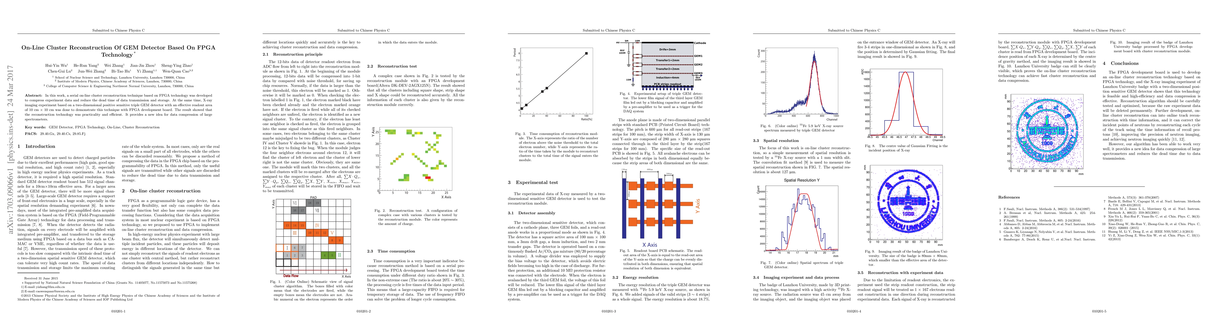 In this work, a serial on-line cluster reconstruction technique based on FPGA technology was developed to compress experiment data and reduce the dead time of data transmission and storage. At the same time, X-ray imaging experiment based on a two-dimensional positive sensitive triple GEM detector with an effective readout area of 10 cm*10 cm was done to demonstrate this technique with FPGA development board. The result showed that the reconstruction technology was practicality and efficient. It provides a new idea for data compression of large spectrometers.