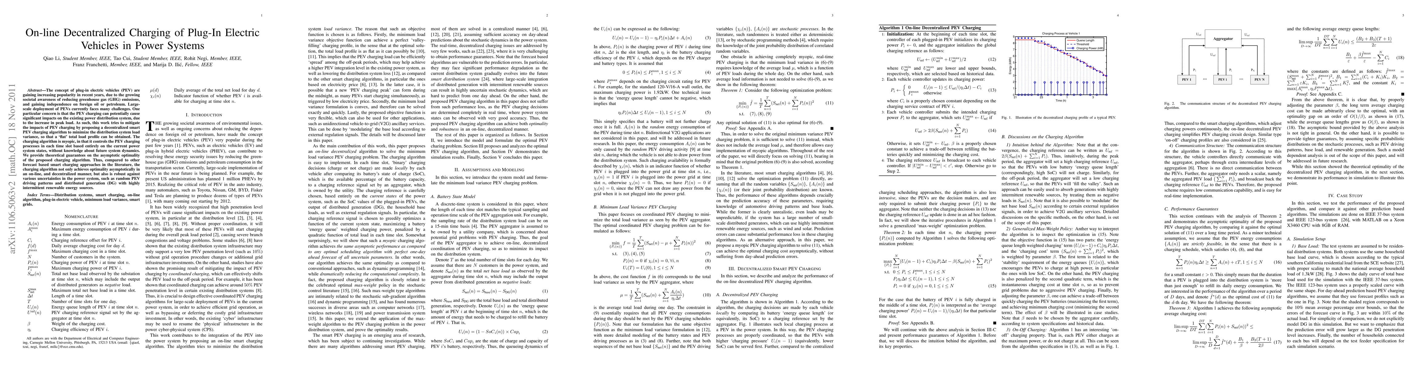 This paper proposes a decentralized, online smart charging algorithm for plug-in electric vehicles (PEVs) to minimize the impact on the power distribution system by reducing peak load variance. The algorithm is robust against uncertainties and achieves asymptotic optimality without relying on future system forecasts.