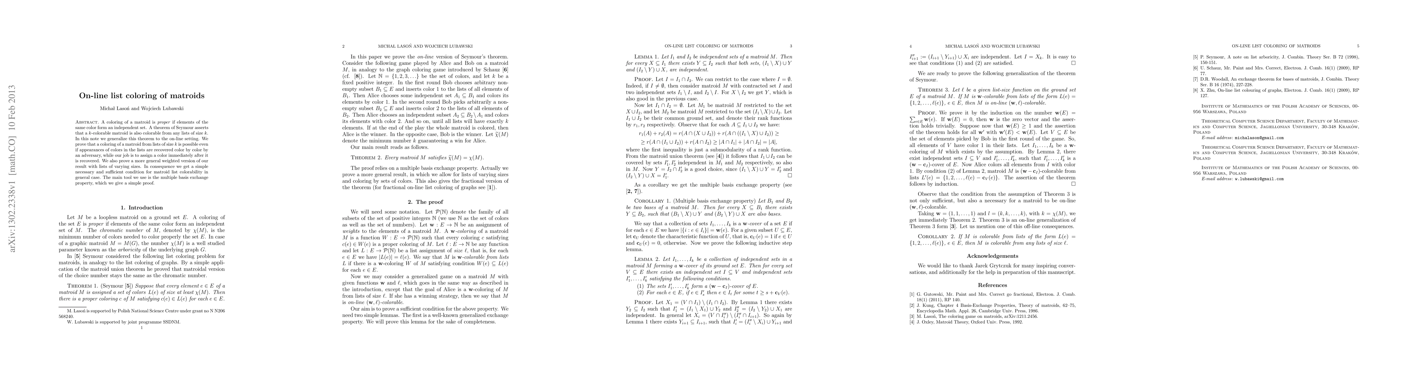 Researchers have developed a method to color matroids using online lists of sizes k and varying weights, enabling proper coloring even under adversary interference.