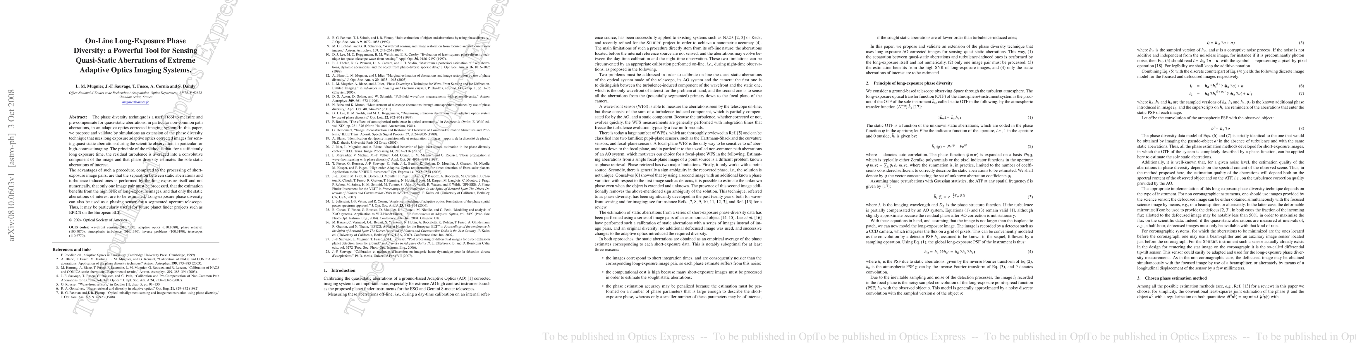 This paper proposes an extension of phase diversity technique using long-exposure adaptive optics images to measure quasi-static aberrations, offering advantages like averaging residual turbulence and high SNR benefits, and potentially serving as a phasing sensor for future planet finder projects.
