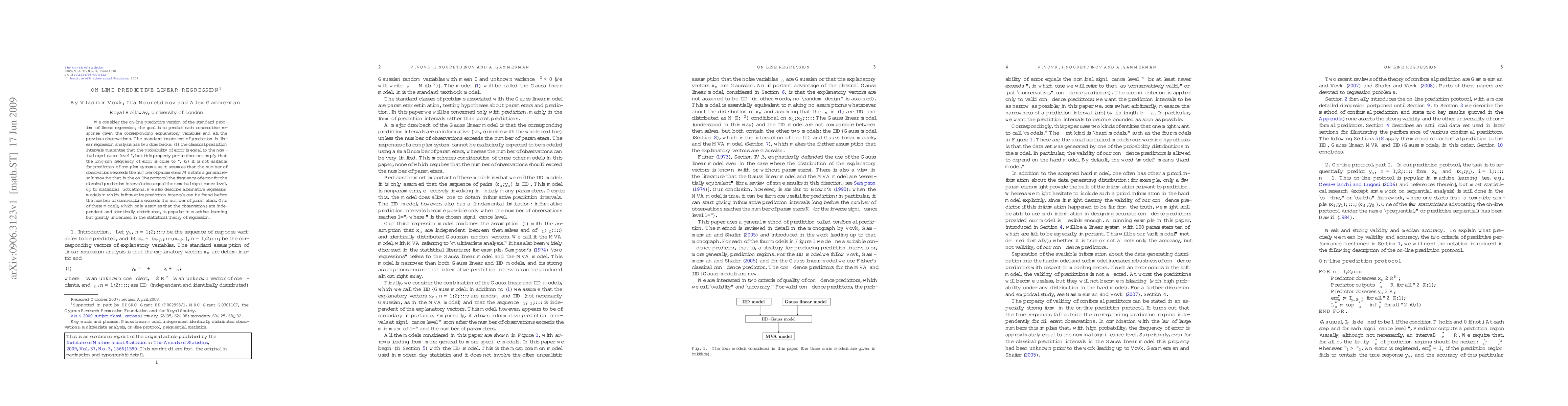 This research addresses the limitations of traditional prediction methods in linear regression, particularly in online predictive scenarios. It establishes that classical prediction intervals' error frequency aligns with the nominal significance level, resolving one drawback. Additionally, it introduces alternative regression models suitable for predicting complex systems even when the number of observations is less than the parameters, making it relevant for machine learning applications.