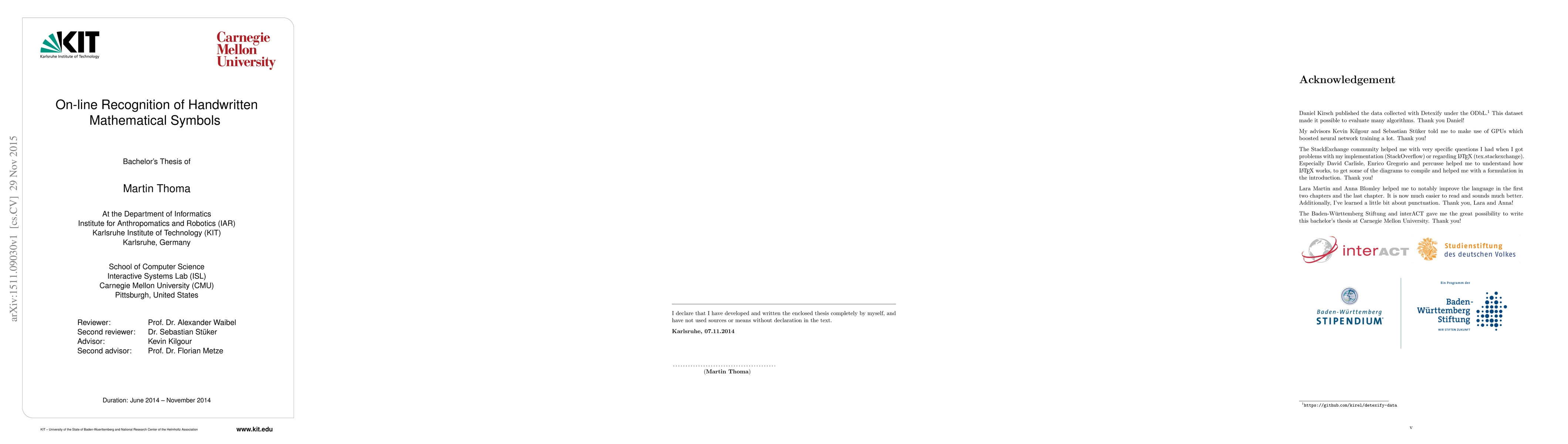A recognition system for handwritten mathematical symbols was developed using pen trajectory analysis, achieving a top 1 error rate of less than 17.5% and a top 3 error rate of 4.0%. The system improved upon previous results by 18.5% in top 1 error and 29.7% in top 3 error.