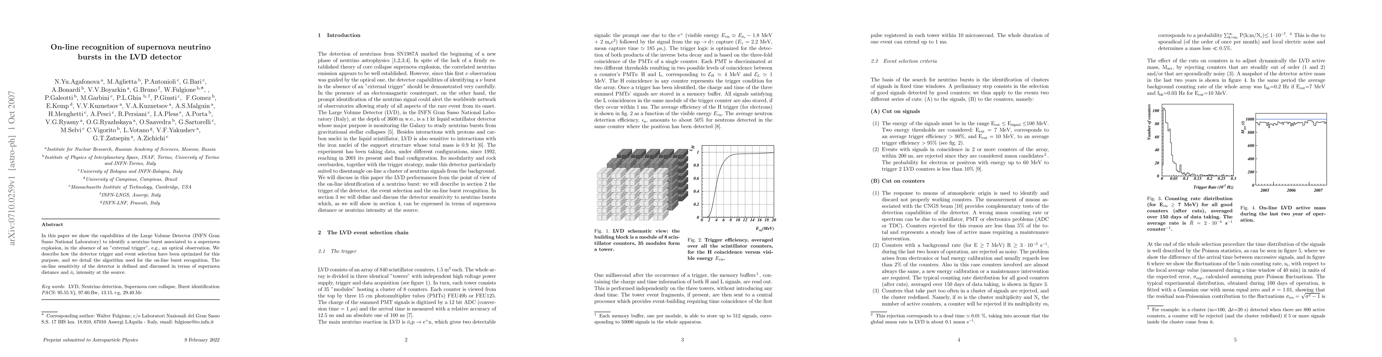This paper demonstrates the Large Volume Detector's ability to identify supernova neutrino bursts without external triggers, detailing optimized detector trigger, event selection, and on-line burst recognition algorithms. It discusses the detector's sensitivity in terms of supernova distance and electron antineutrino intensity at the source.