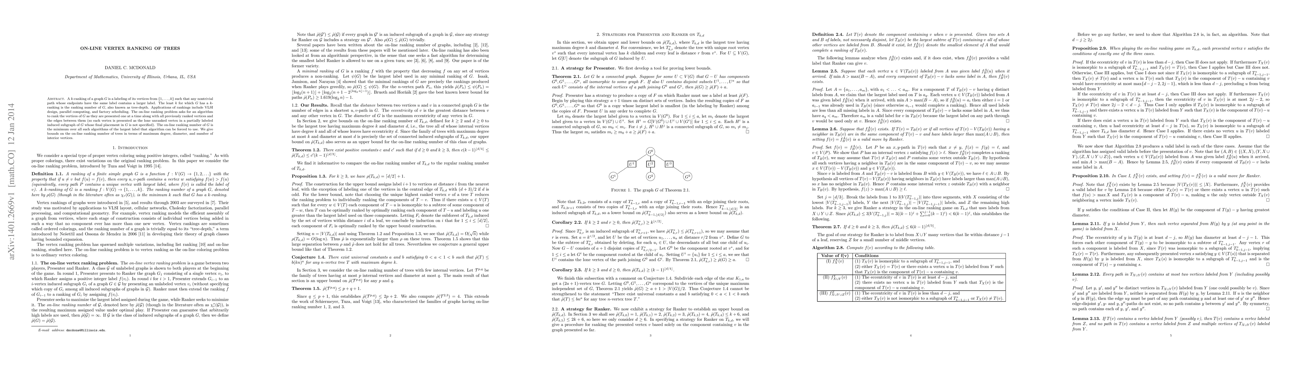 This paper investigates the on-line vertex ranking problem for trees, where vertices are labeled sequentially with constraints ensuring a valid ranking. The authors provide bounds for the on-line ranking number of trees based on their maximum degree, diameter, and number of interior vertices.