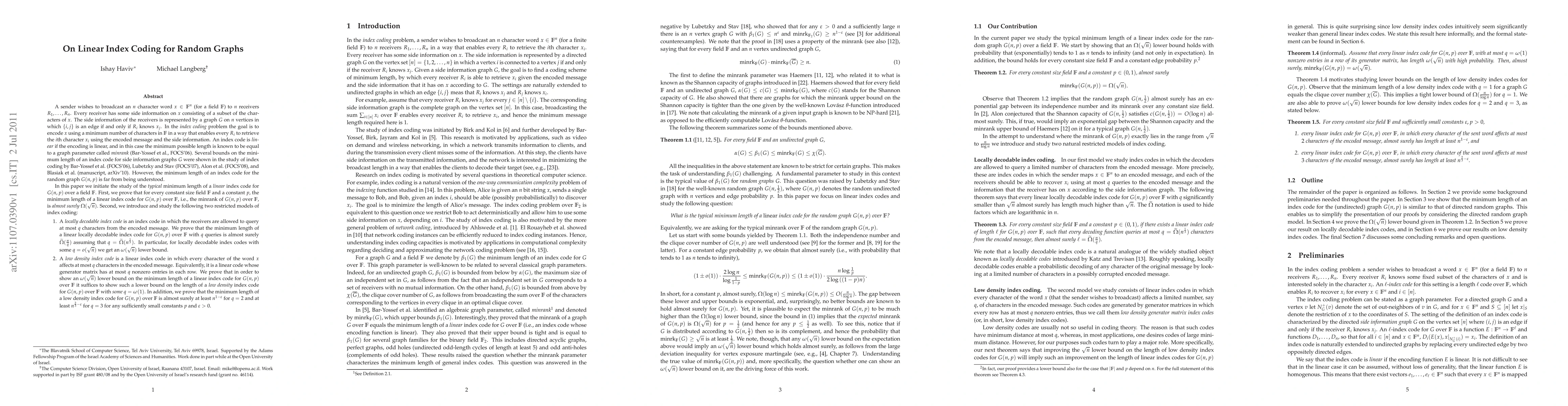 A sender wishes to broadcast an n character word x in F^n (for a field F) to n receivers R_1,...,R_n. Every receiver has some side information on x consisting of a subset of the characters of x. The side information of the receivers is represented by a graph G on n vertices in which {i,j} is an edge if R_i knows x_j. In the index coding problem the goal is to encode x using a minimum number of characters in F in a way that enables every R_i to retrieve the ith character x_i using the encoded message and the side information. An index code is linear if the encoding is linear, and in this case the minimum possible length is known to be equal to a graph parameter called minrank (Bar-Yossef et al., FOCS'06). Several bounds on the minimum length of an index code for side information graphs G were shown in the study of index coding. However, the minimum length of an index code for the random graph G(n,p) is far from being understood. In this paper we initiate the study of the typical minimum length of a linear index code for G(n,p) over a field F. First, we prove that for every constant size field F and a constant p, the minimum length of a linear index code for G(n,p) over F is almost surely Omega(\sqrt{n}). Second, we introduce and study the following two restricted models of index coding: 1. A locally decodable index code is an index code in which the receivers are allowed to query at most q characters from the encoded message. 2. A low density index code is a linear index code in which every character of the word x affects at most q characters in the encoded message. Equivalently, it is a linear code whose generator matrix has at most q nonzero entries in each row.