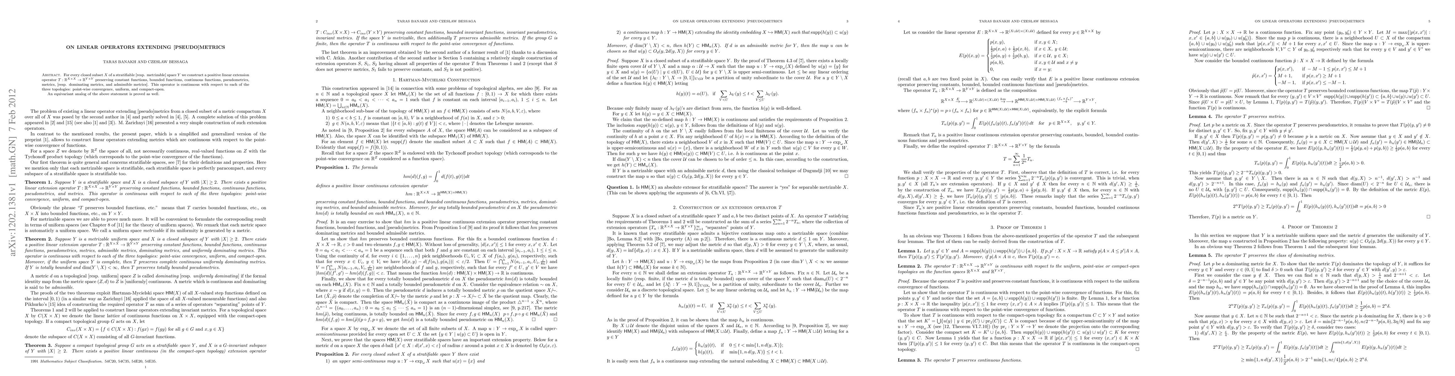 This paper introduces a linear operator that extends pseudo-metrics to the entire space, preserving various function types and topologies, including point-wise convergence, uniformity, and compact-open topology.
