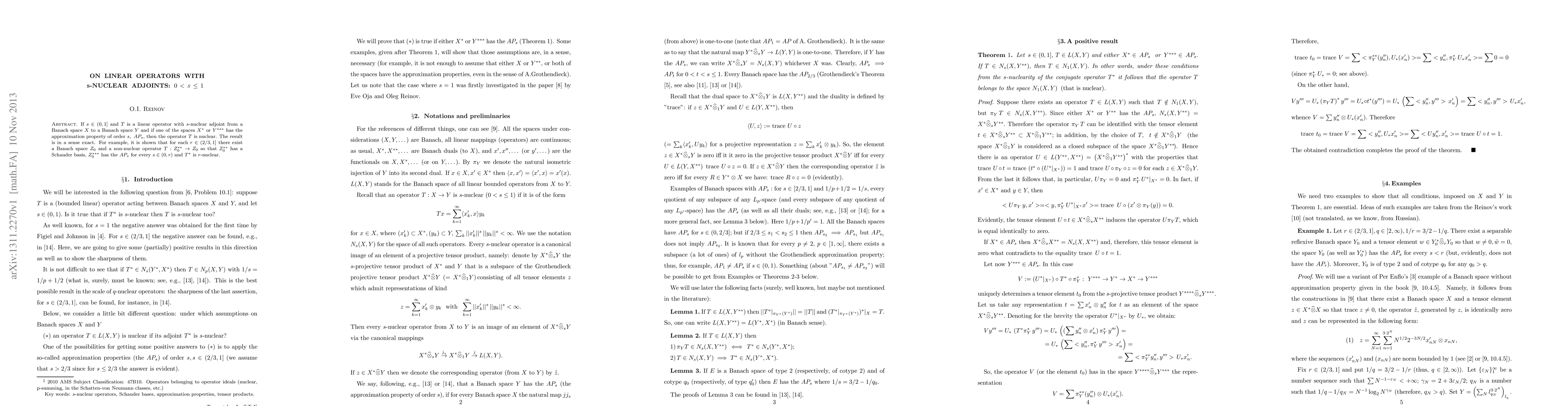 A linear operator $T$ with an $s$-nuclear adjoint is nuclear if one of the spaces has the approximation property of order $s$. The result holds for a range of values of $s$.
