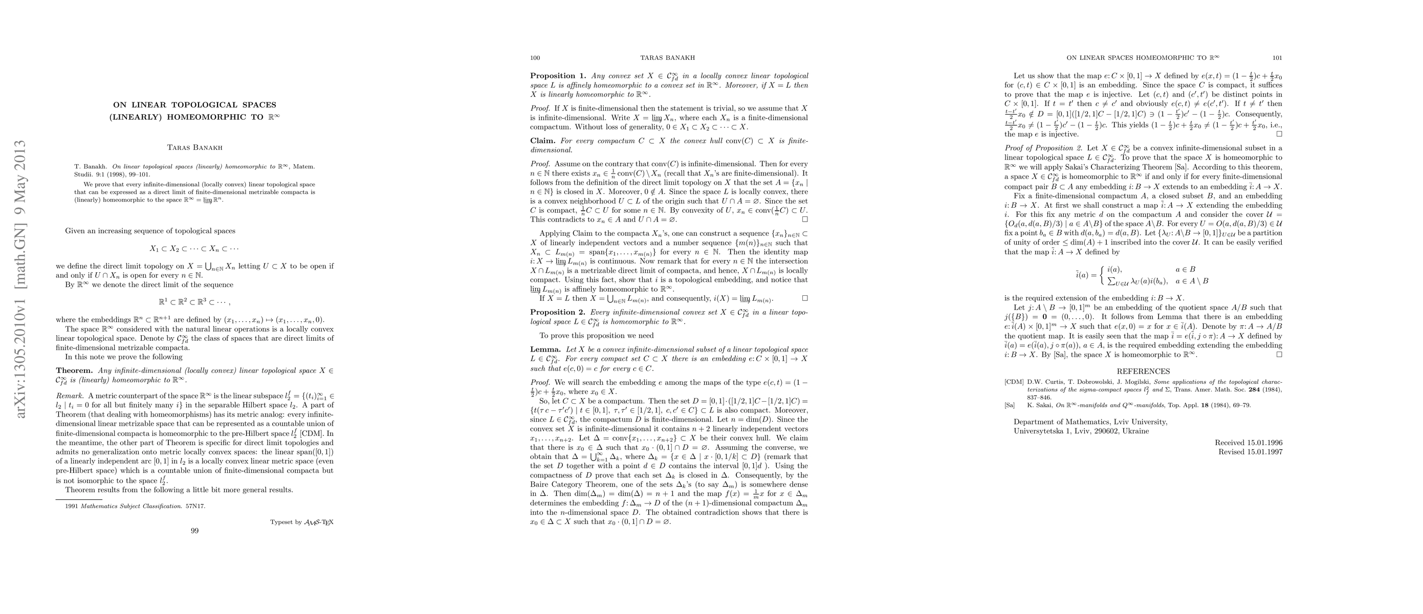 Researchers prove that infinite-dimensional spaces homeomorphic to $R^ty$ can be expressed as direct limits of finite-dimensional metrizable compacta, establishing a key connection between topological spaces.