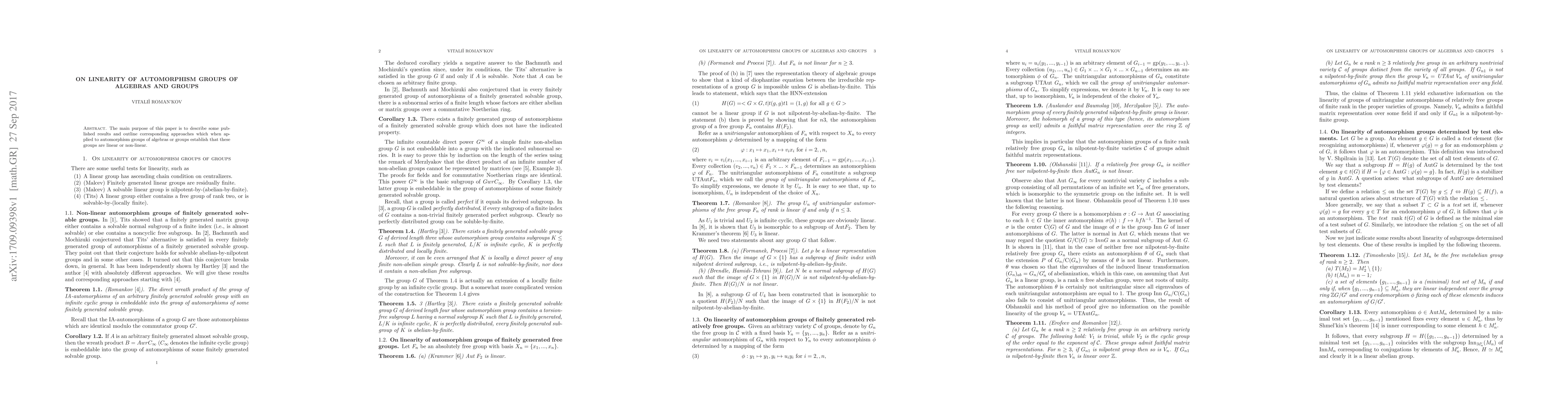 The main purpose of this paper is to describe some published results and outline corresponding approaches which when applied to automorphism groups of algebras or groups establish that these groups are linear or non-linear.