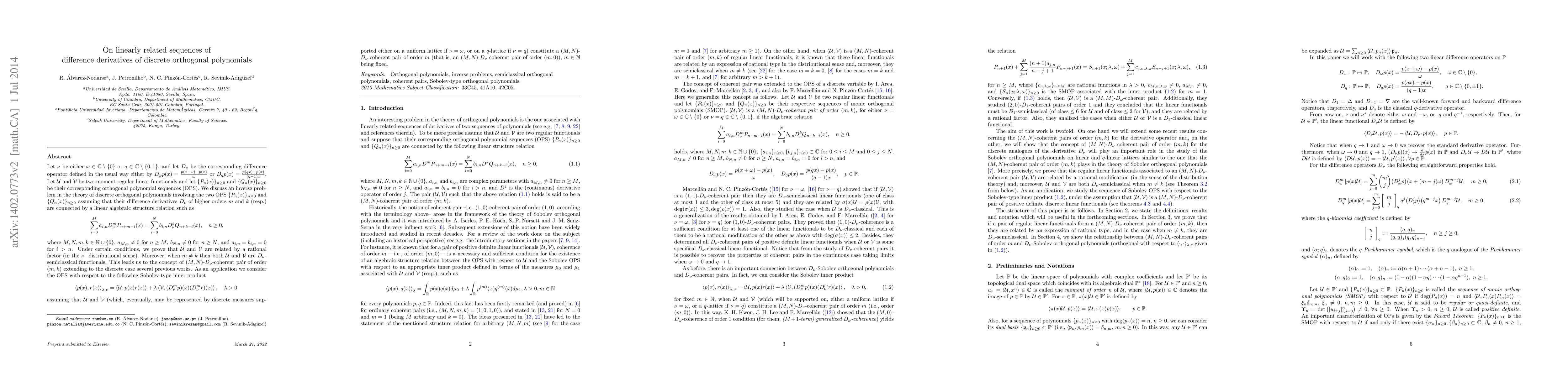 The paper investigates linearly related sequences of difference derivatives of discrete orthogonal polynomials and finds a connection between two moment regular linear functionals under certain conditions, leading to the concept of (M,N)-D_v-coherent pairs.