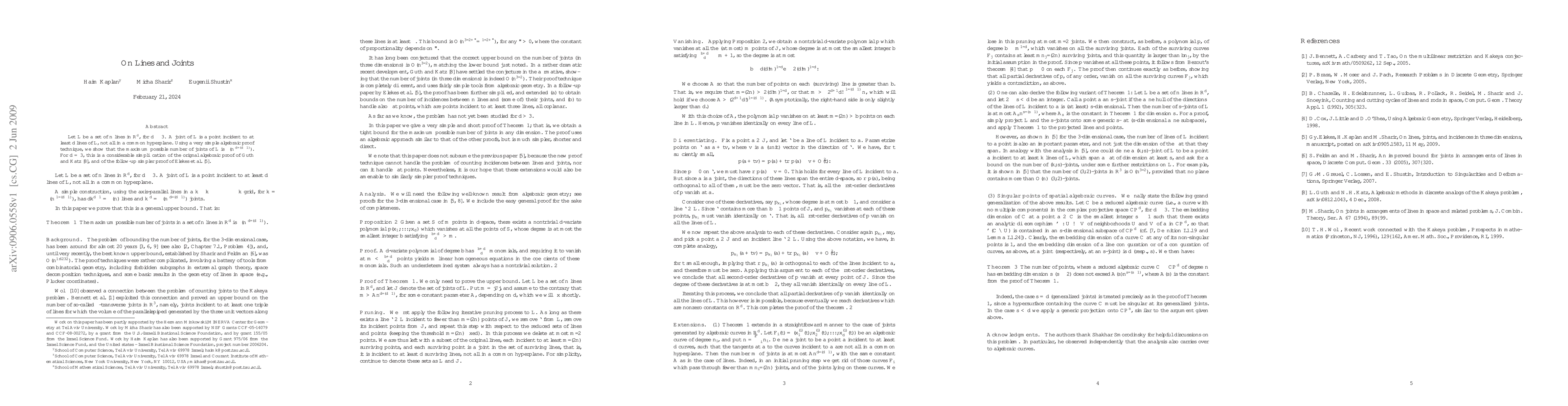 Researchers prove that the maximum number of joints in a set of lines in d-dimensional space is Theta(n^(d/(d-1))), offering a simplified proof for d=3.
