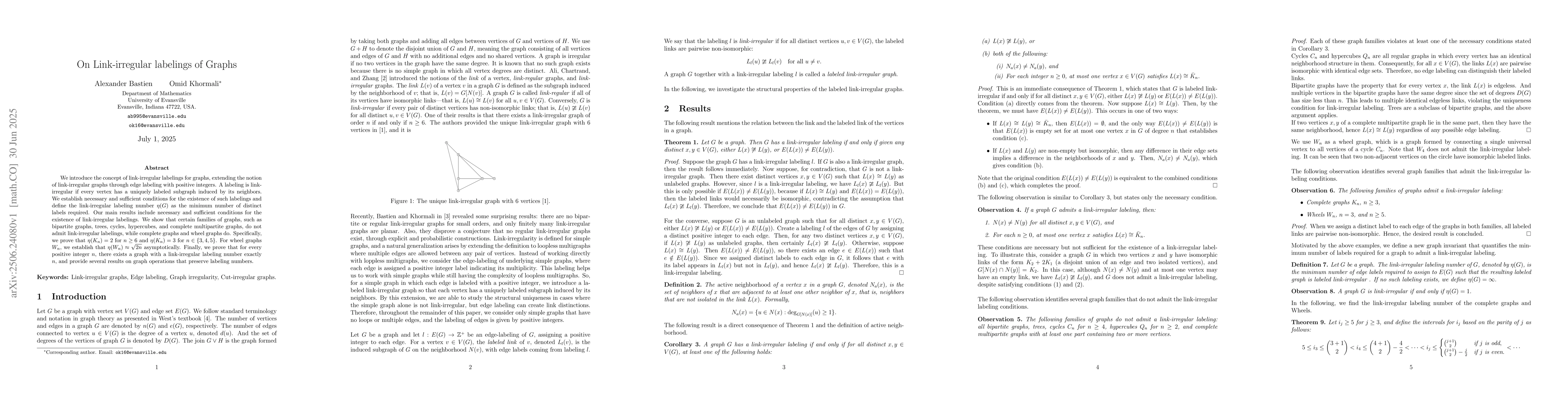 We introduce the concept of link-irregular labelings for graphs, extending the notion of link-irregular graphs through edge labeling with positive integers. A labeling is link-irregular if every vertex has a uniquely labeled subgraph induced by its neighbors. We establish necessary and sufficient conditions for the existence of such labelings and define the link-irregular labeling number $\eta(G)$ as the minimum number of distinct labels required. Our main results include necessary and sufficient conditions for the existence of link-irregular labelings. We show that certain families of graphs, such as bipartite graphs, trees, cycles, hypercubes, and complete multipartite graphs, do not admit link-irregular labelings, while complete graphs and wheel graphs do. Specifically, we prove that $\eta(K_n) = 2$ for $n \geq 6$ and $\eta(K_n) = 3$ for $n \in \{3,4,5\}$. For wheel graphs $W_n$, we establish that $\eta(W_n) \approx \sqrt{2n}$ asymptotically. Finally, we prove that for every positive integer $n$, there exists a graph with a link-irregular labeling number exactly $n$, and provide several results on graph operations that preserve labeling numbers.
