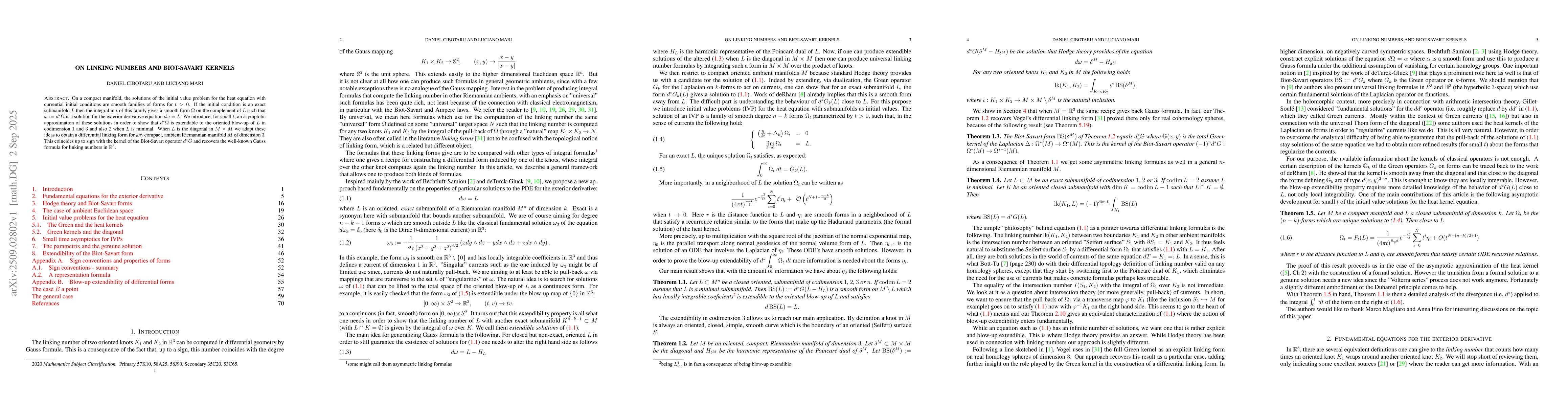 On a compact manifold, the solutions of the initial value problem for the heat equation with currential initial conditions are smooth families of forms for $t>0$. If the initial condition is an exact submanifold $L$ then the integral in $t$ of this family gives a smooth form $\Omega$ on the complement of $L$ such that $\omega:=d^*\Omega$ is a solution for the exterior derivative equation $d\omega=L$. We introduce, for small $t$, an asymptotic approximation of these solutions in order to show that $d^*\Omega$ is extendible to the oriented blow-up of $L$ in codimension $1$ and $3$ and also $2$ when $L$ is minimal. When $L$ is the diagonal in $M\times M$ we adapt these ideas to obtain a differential linking form for any compact, ambient Riemannian manifold $M$ of dimension $3$. This coincides up to sign with the kernel of the Biot-Savart operator $d^*G$ and recovers the well-known Gauss formula for linking numbers in $\mathbb{R}^3$.