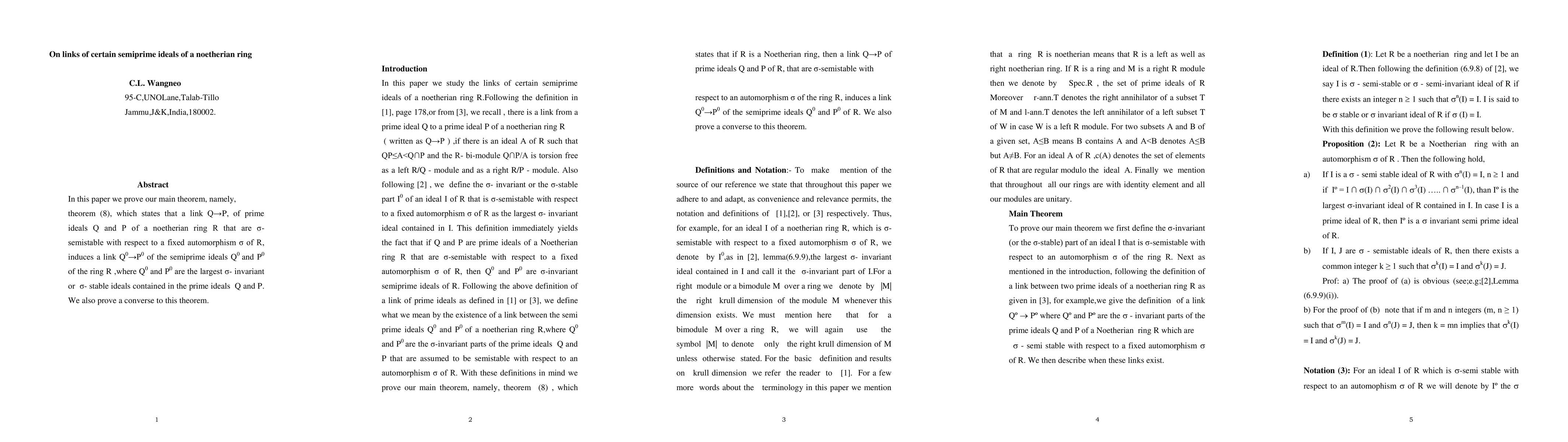 In this paper we prove our main theorem, namely, theorem (8), which states that a link Q\rightarrowP, of prime ideals Q and P of a noetherian ring R that are {\sigma}-semistable with respect to a fixed automorphism {\sigma} of R, induces a link Q0\rightarrowP0 of the semiprime ideals Q0 and P0 of the ring R,where Q0 and P0 are the largest {\sigma}- invariant or {\sigma}- stable ideals contained in the prime ideals Q and P. We also prove a converse to this theorem.